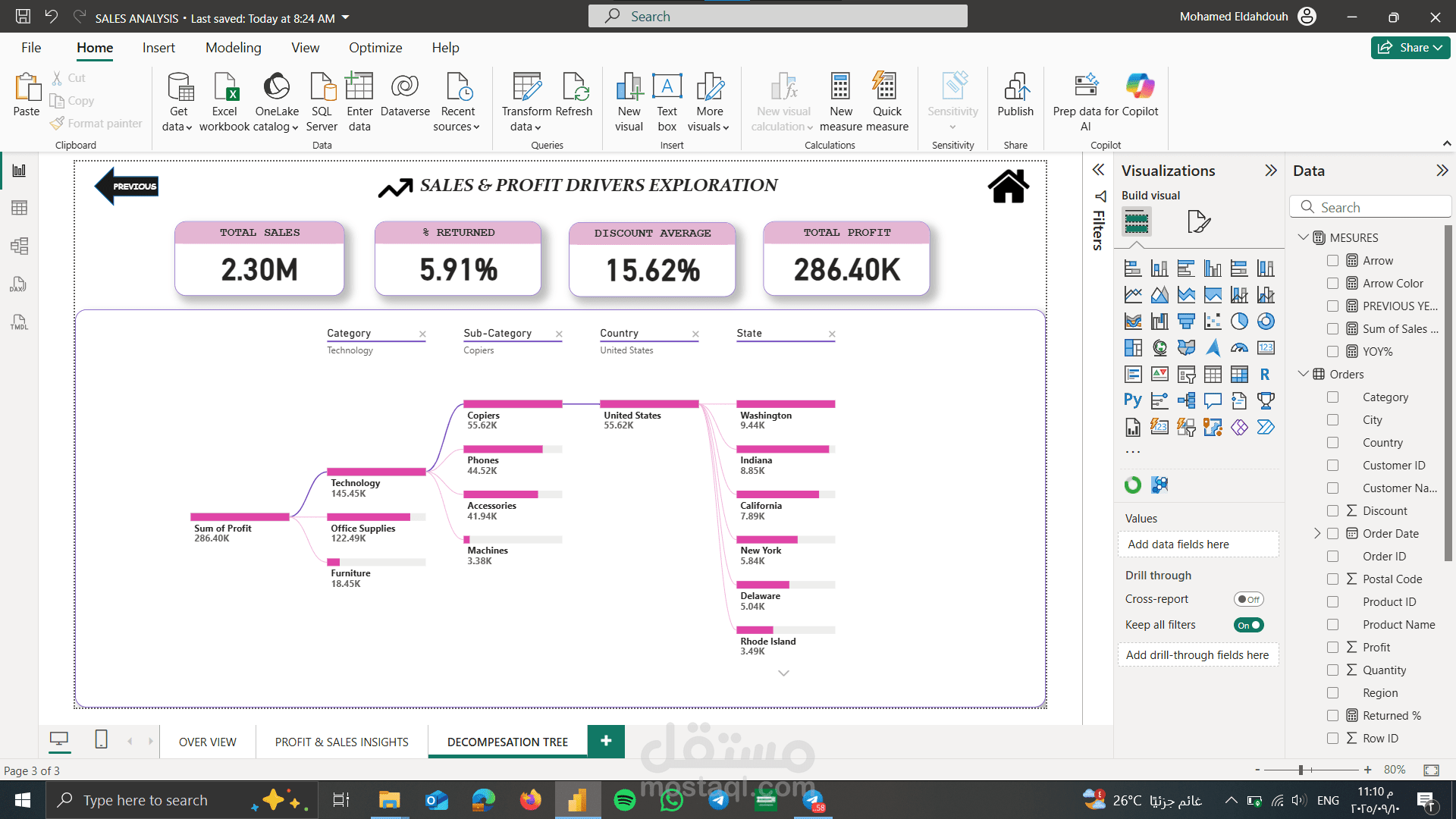 - شجرة تحليل (Decomposition Tree) لاكتشاف عوامل الربح.