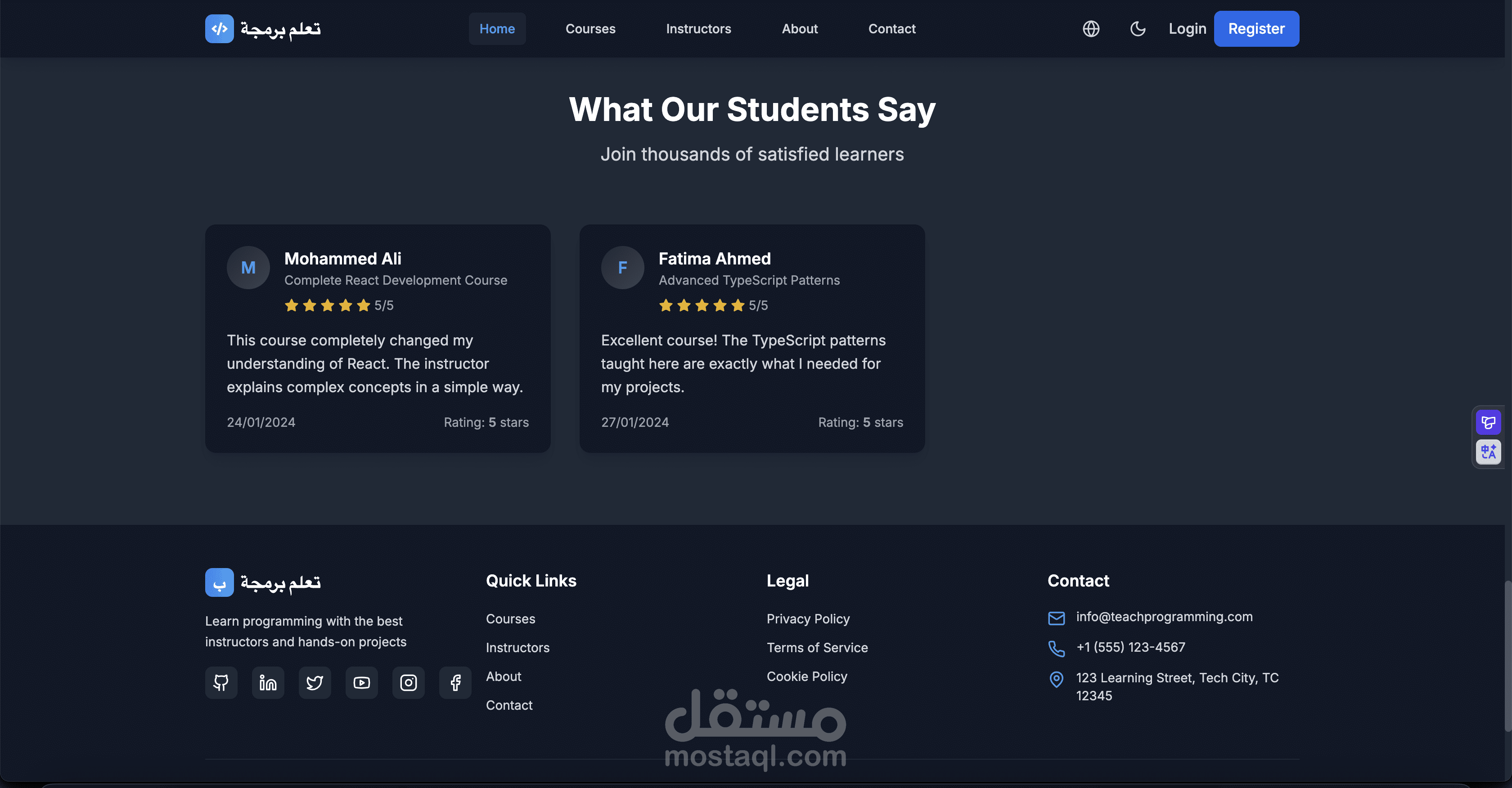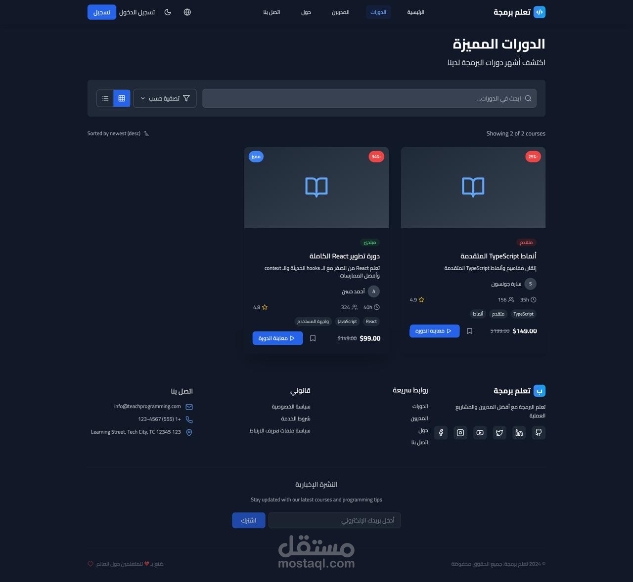 موقع تعليمي لعرض الكورسات (Courses Site).