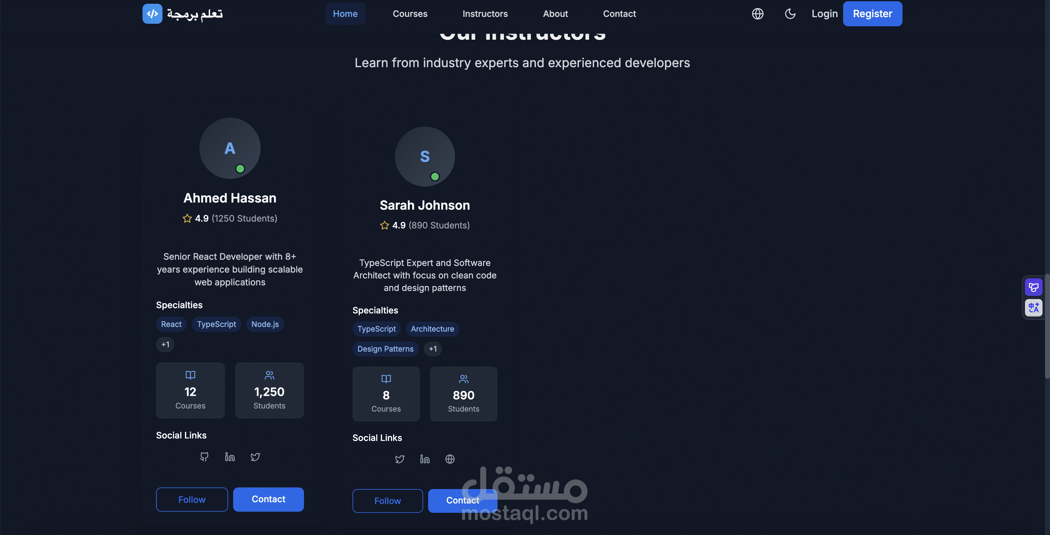 ملفات المعلمين (Instructor Profiles) مع معلومات وتفاصيل.