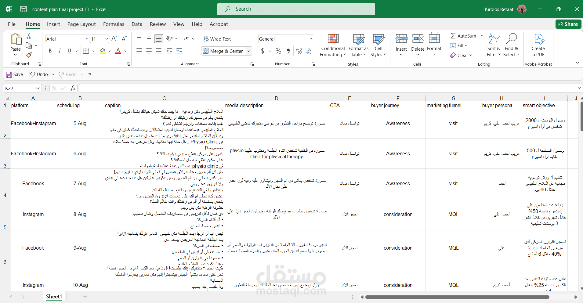 خطة محتوى لمركز علاج طبيعي لمدة شهر كامل
