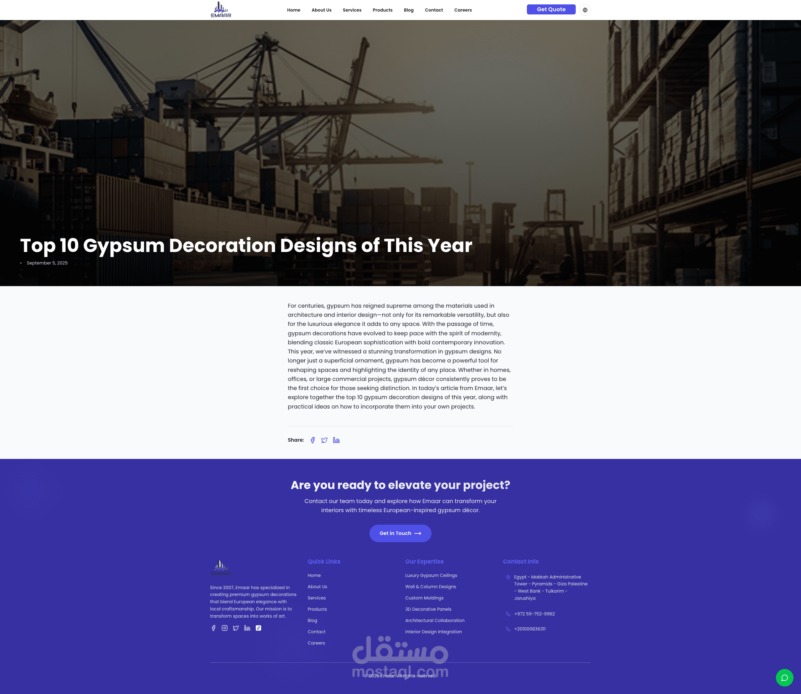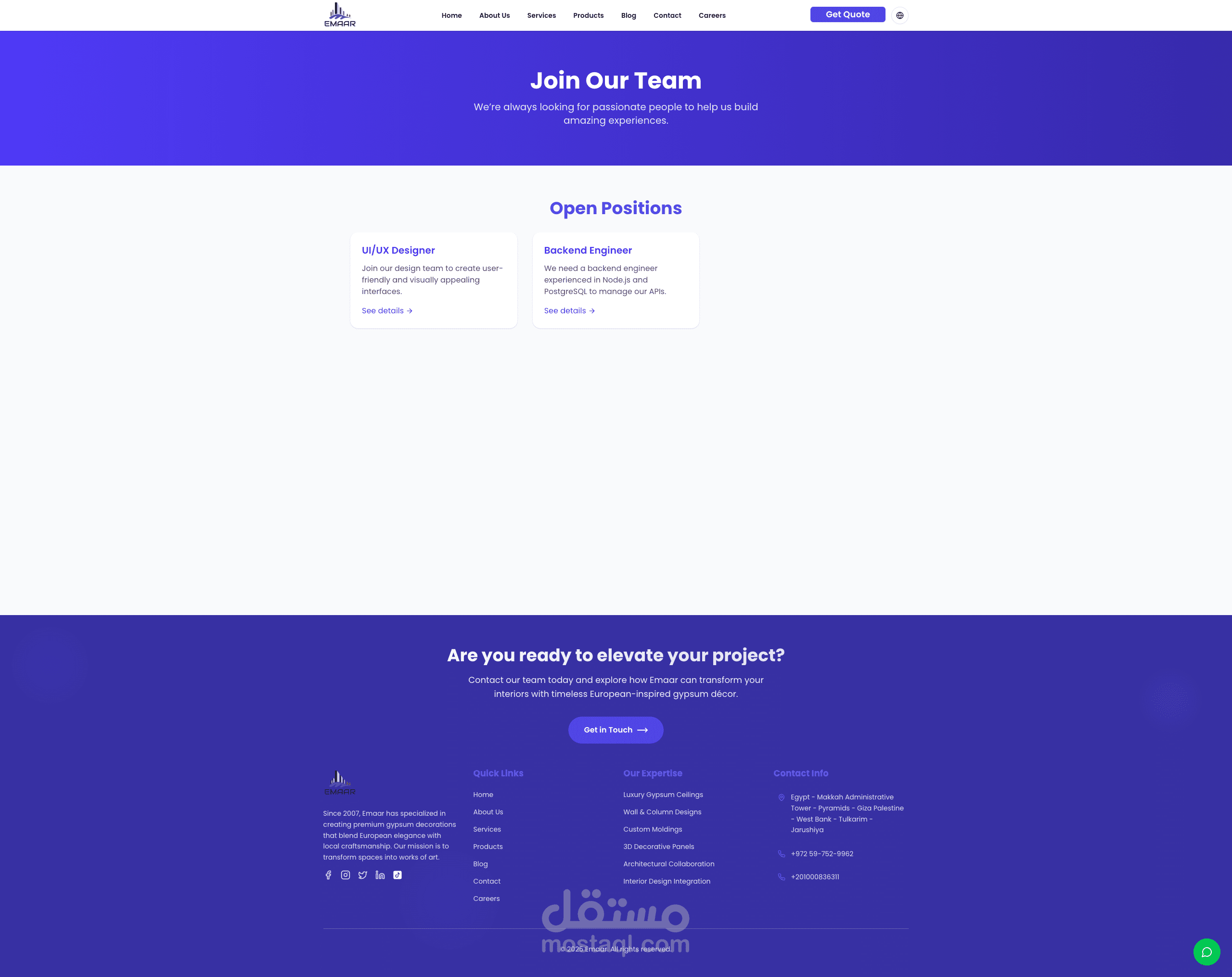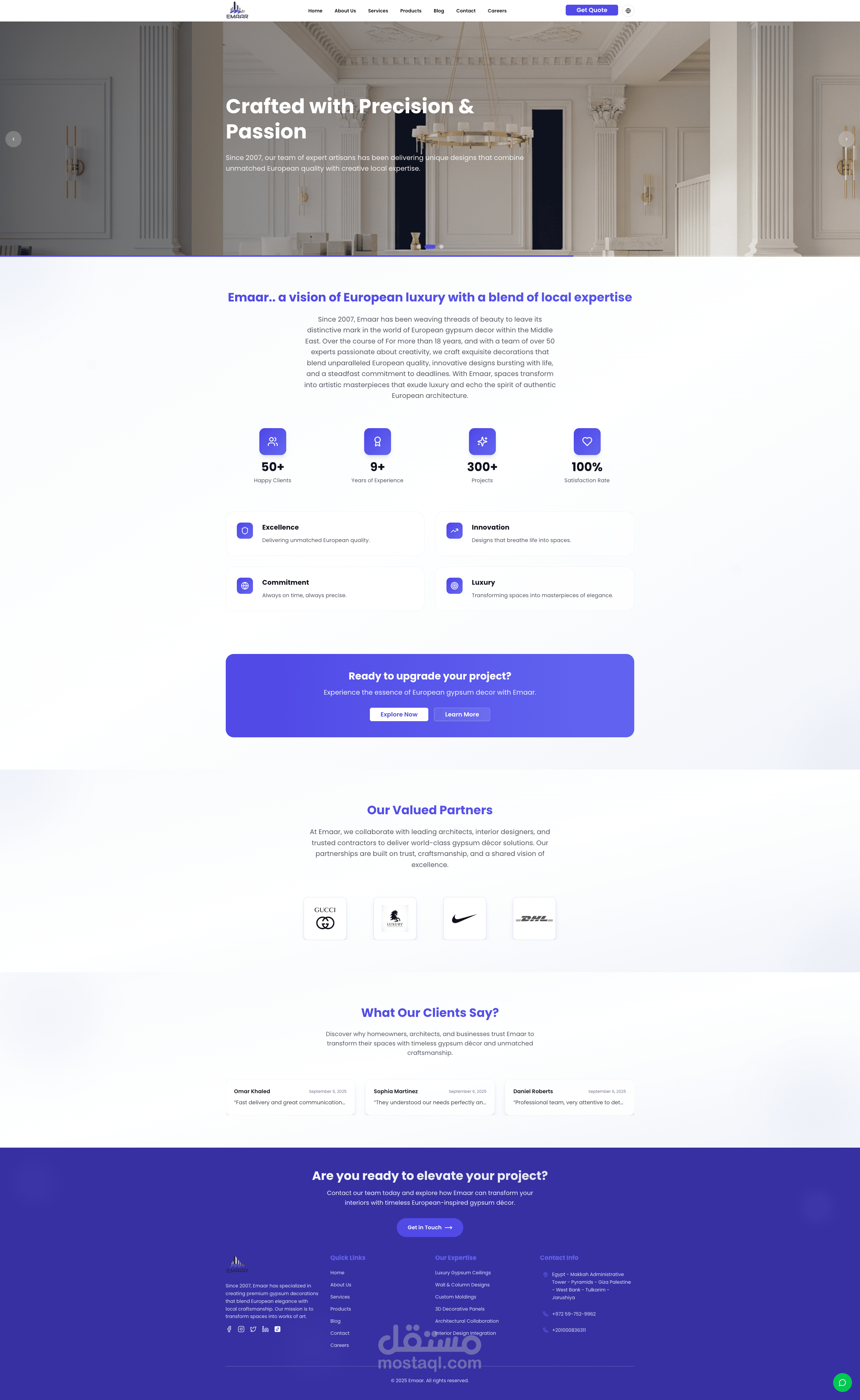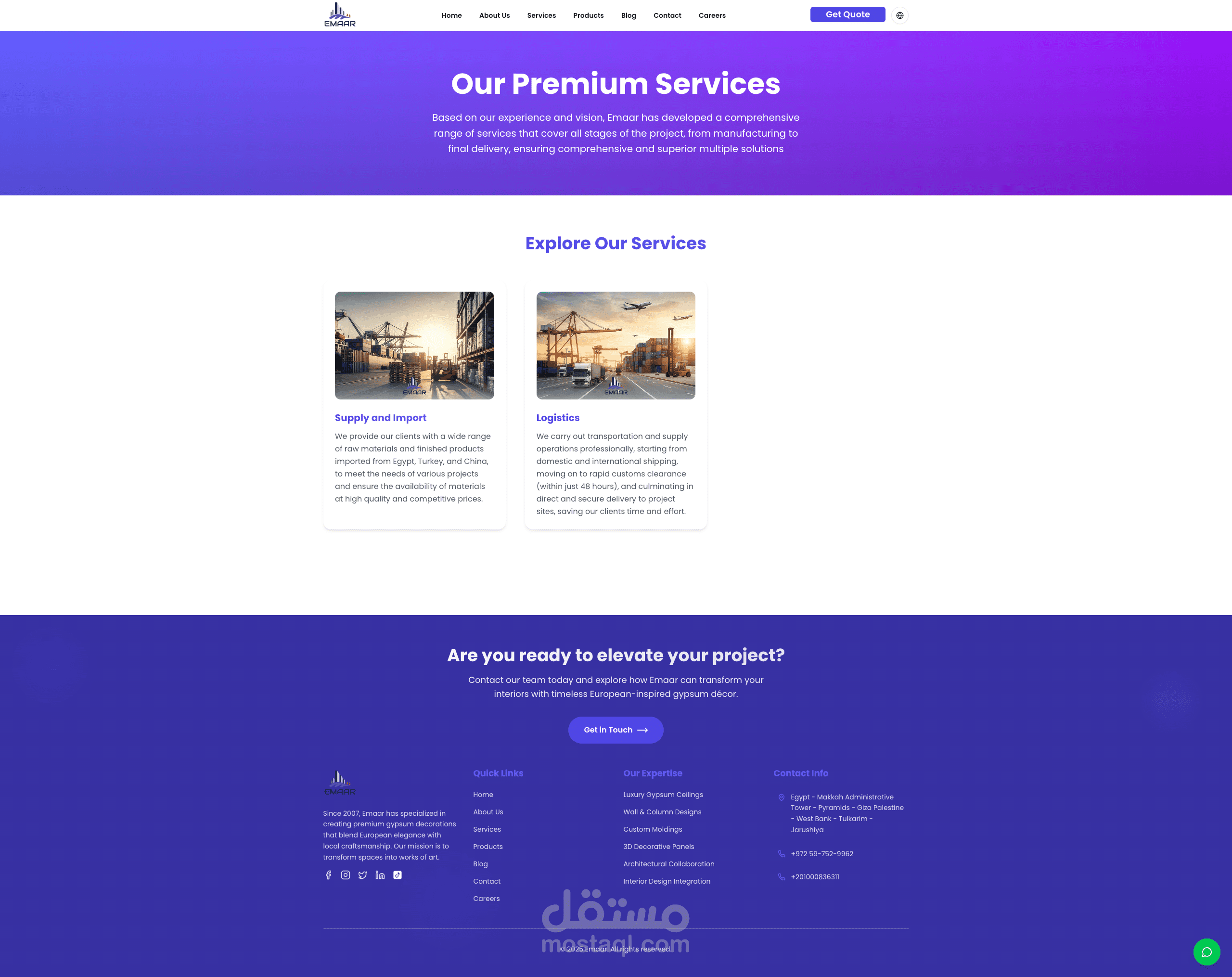 طوّرت منصة ويب متكاملة لشركة إعمار، الرائدة في مجال الديكورات الجبسية الأوروبية. المنصة تضم المنتجات، الخدمات، المدونة، ونماذج التواصل، بالإضافة إلى لوحة تحكم قوية لإدارة المحتوى والوظائف. تم بناء المشروع باستخدام Next.js و React و Tailwind و Supabase لضمان السرعة والمرونة وتجربة مستخدم عصرية.