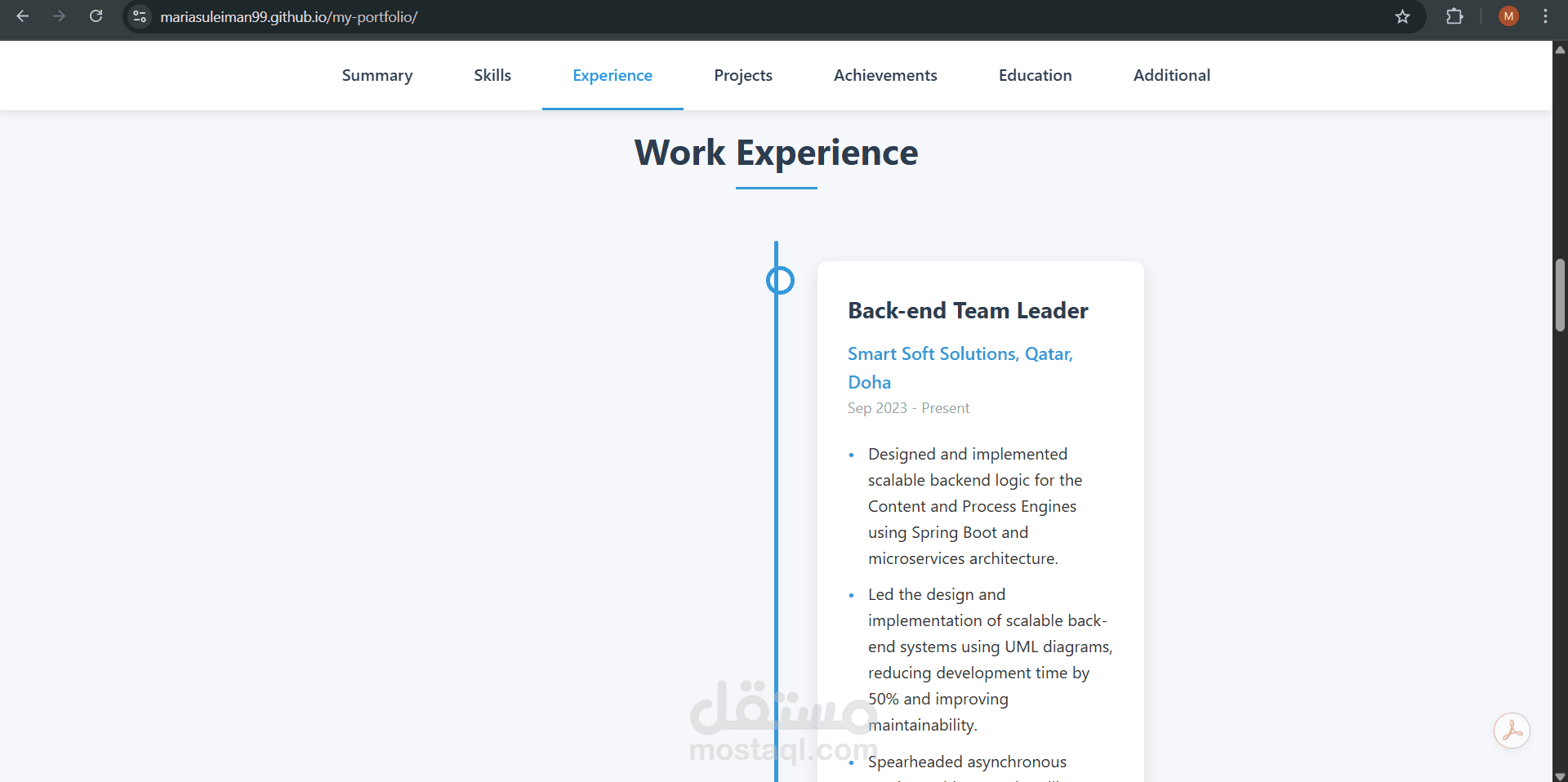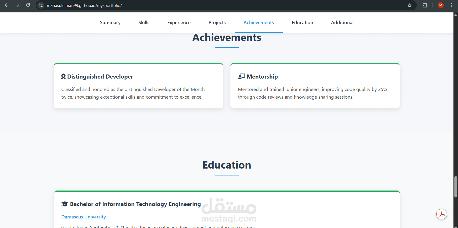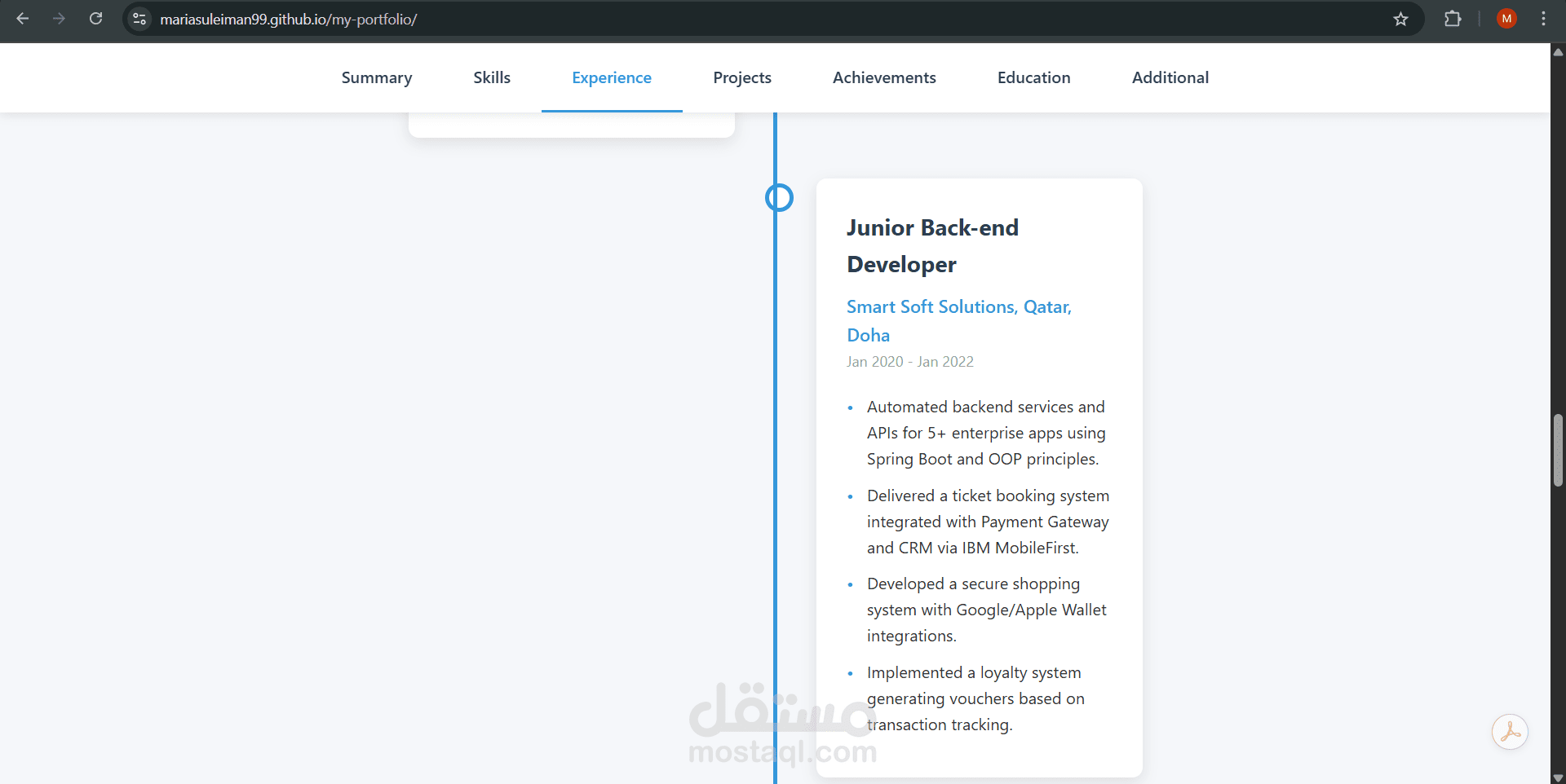 The webpage at https://mariasuleiman99.g... is my personal portfolio website , a Back-end Developer.