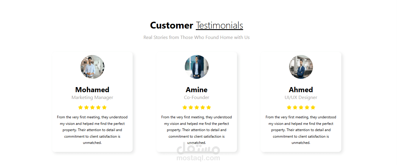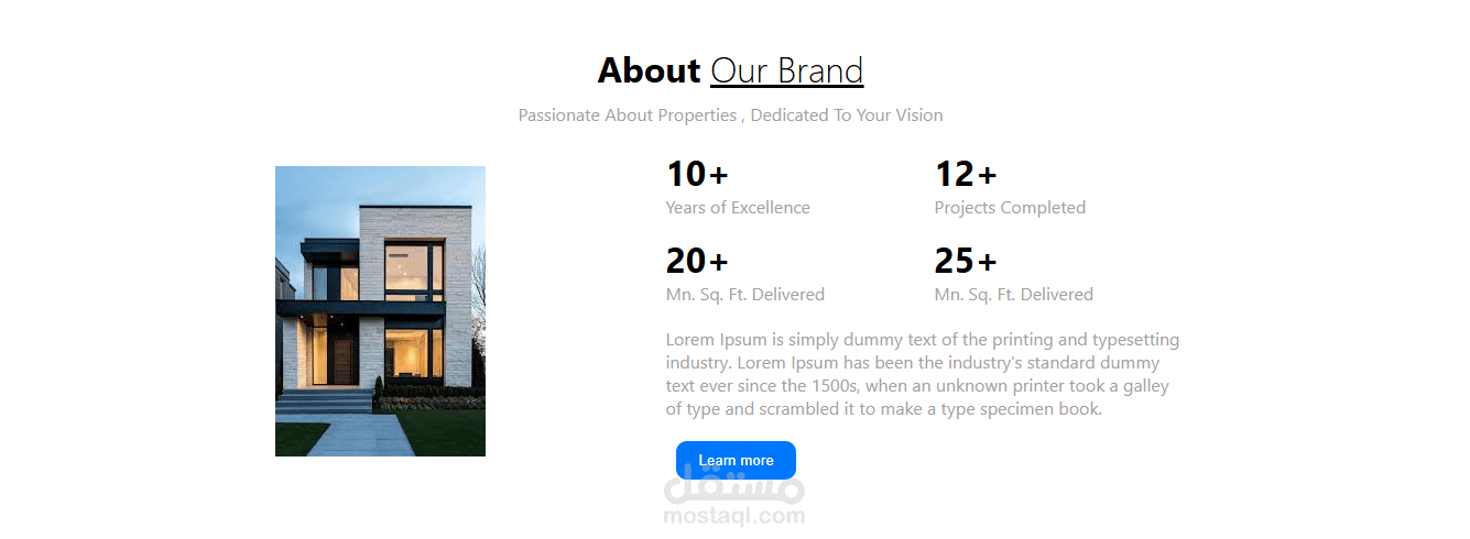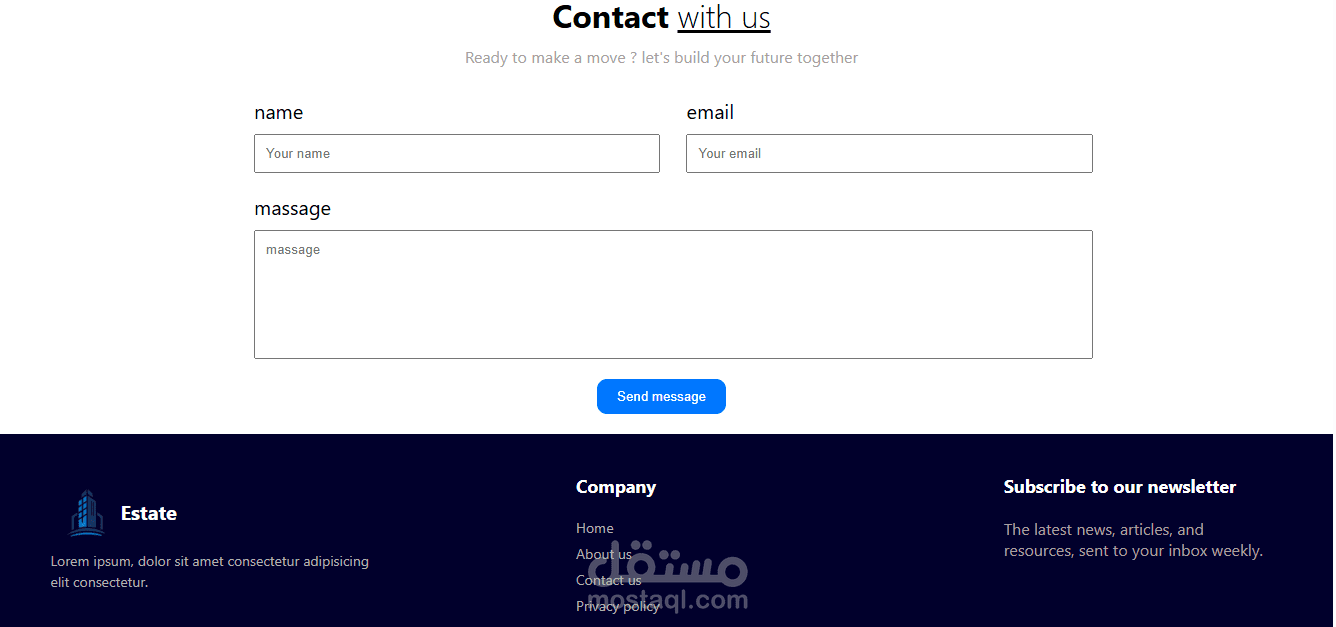 صفحة هبوط ب استخدام react js لموقع عقارات.