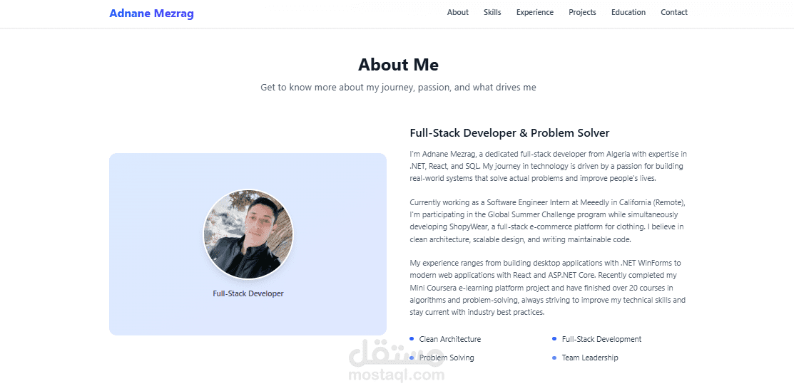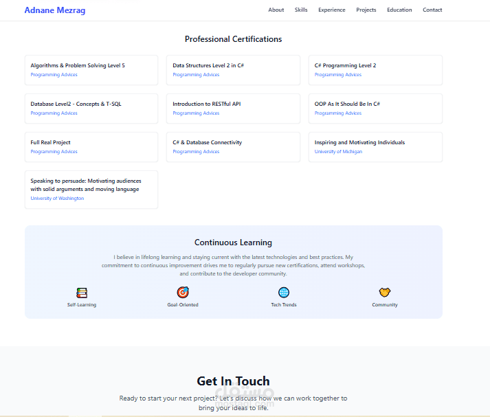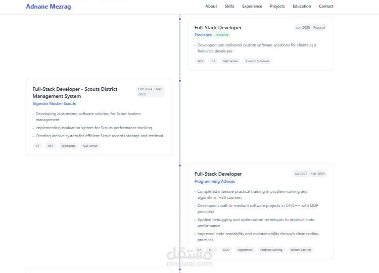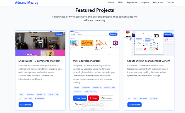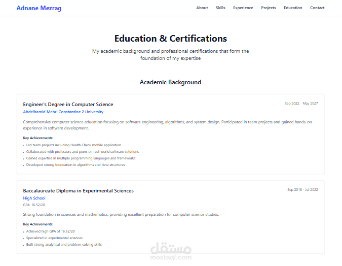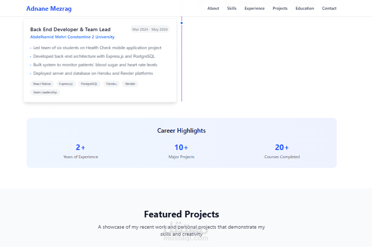 موقعي الشخصي، أعرض فيه سيرتي الذاتية، مهاراتي في تطوير البرمجيات، وأبرز مشاريعي العملية. الموقع مصمم ليكون واجهة احترافية للتعريف بخبرتي في مجالات تطوير الأنظمة والتطبيقات.