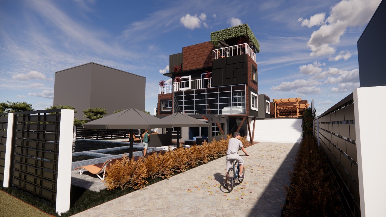 The land allocated for the residence is 1000 m2 (40 x 25) m