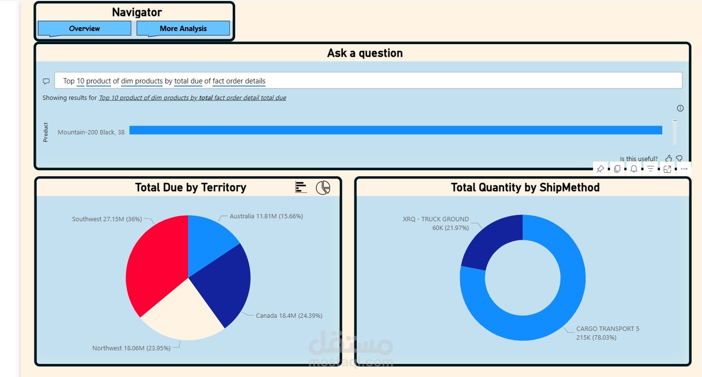 تم تصميم لوحة معلومات تفاعلية لعرض وتحليل بيانات المبيعات الخاصة بـ Adventure Works بهدف توفير نظرة شاملة تساعد في اتخاذ قرارات استراتيجية دقيقة.
