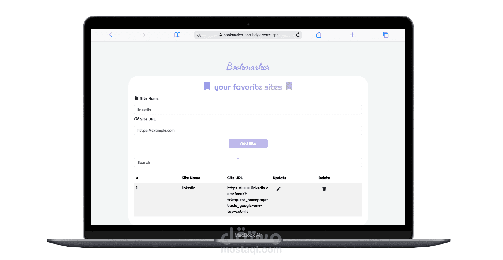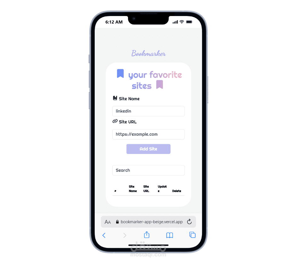 يوفر للمستخدمين إمكانية إضافة، تعديل، حذف، والبحث عن المواقع بسهولة، مع واجهة أنيقة ومتجاوبة تعمل بكفاءة على جميع الأجهزة.