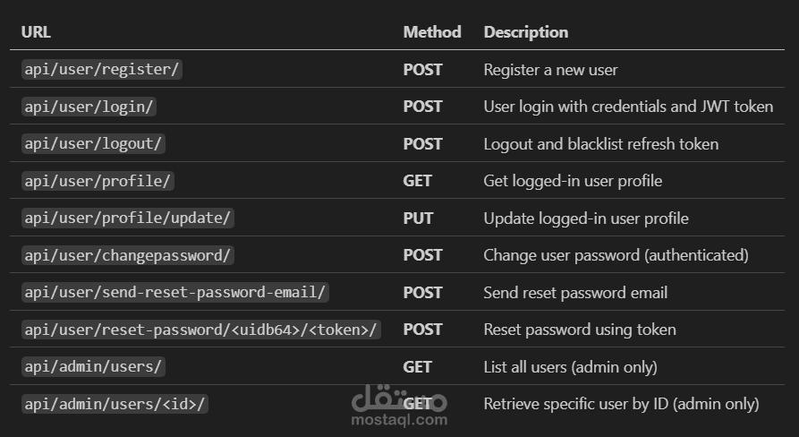 لوحة تحكم خاصة للمشرفين (قائمة المستخدمين + تفاصيلهم).