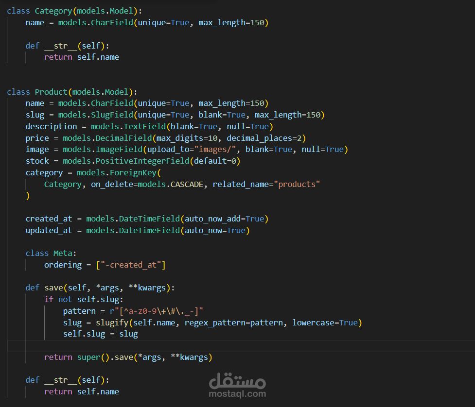 تطوير واجهة برمجية لمتجر إلكتروني باستخدام Django REST Framework.