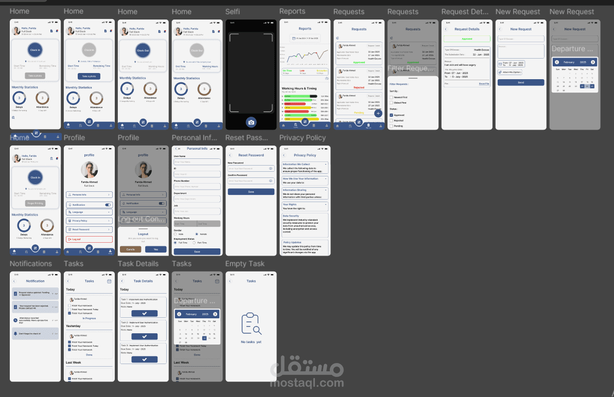 اخذ مواعيد حضور و انصراف الموظفين عن طريق Location و اخذ تقارير بالغياب و التاخير ،و اخذ المهام ،وطلب تاخير او اذن غياب.