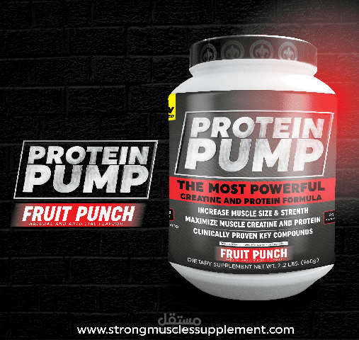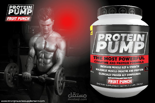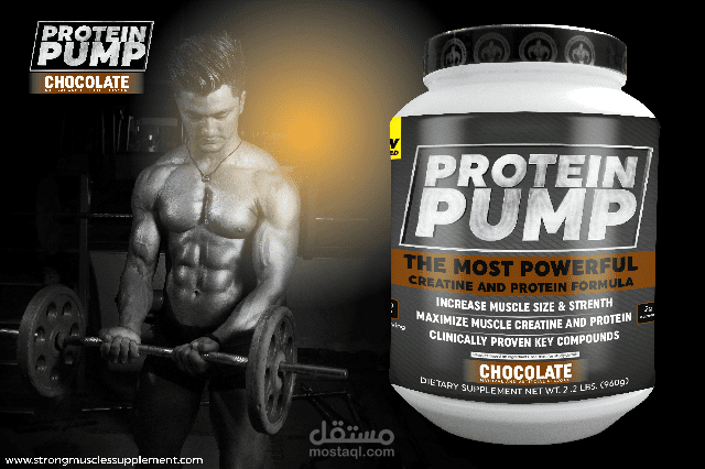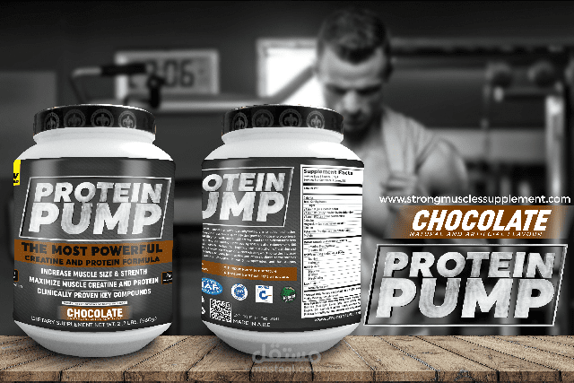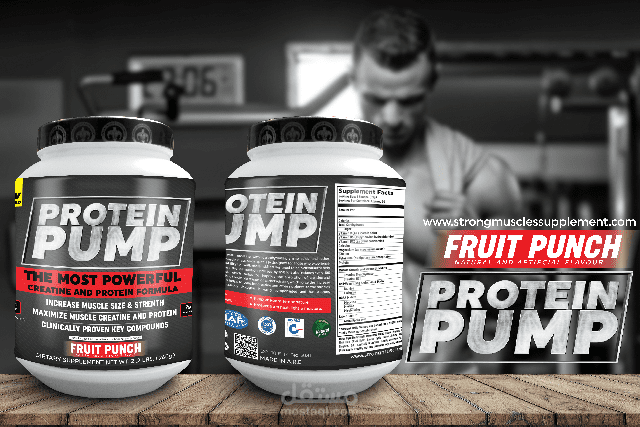 منتج خاص بكمال الأجسام والبروتين تصميم يعطي ايحاء قوة رهيبة من حيث ستايل الفونت والألوان
