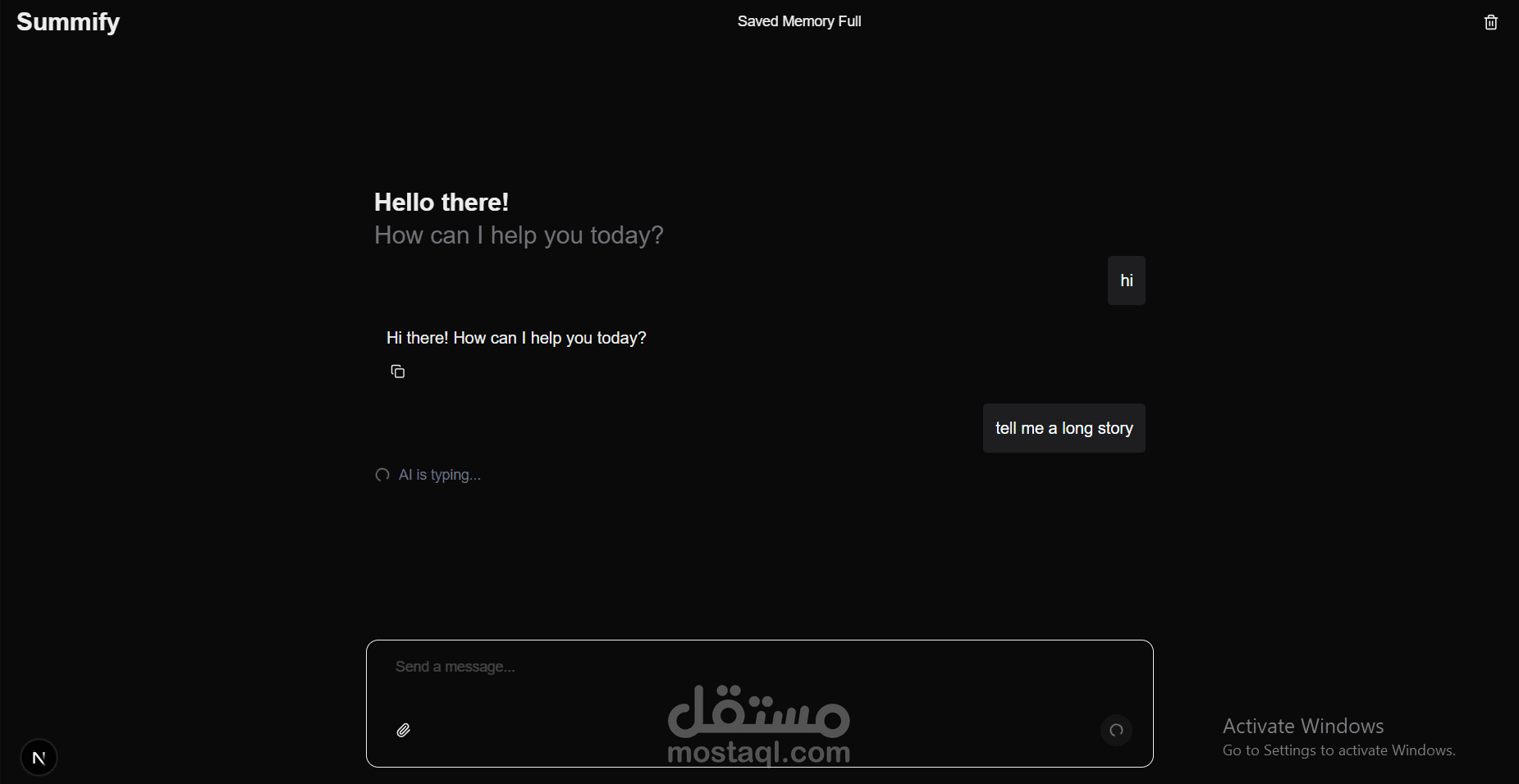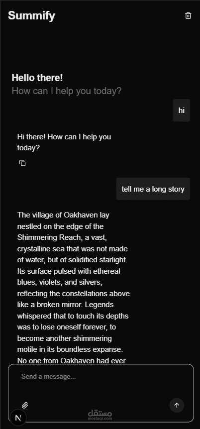 Summify هو تطبيق دردشة خفيف الوزن مدعوم بالذكاء الاصطناعي، مبني باستخدام Next.js + TypeScript + Tailwind CSS.