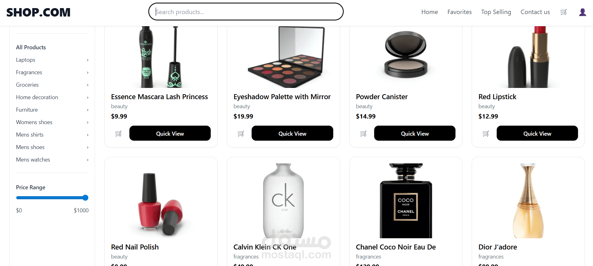 Home page with New Arrivals and Top Selling sections