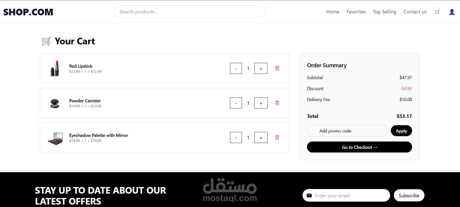? Shopping cart with quantity updates, coupon field, order summary