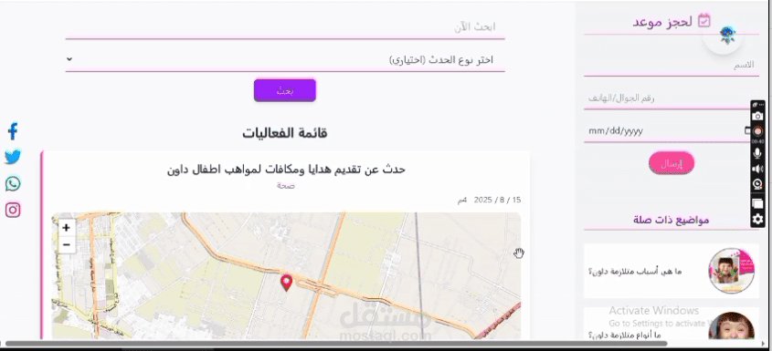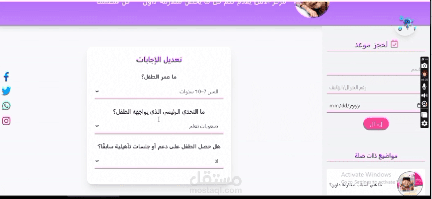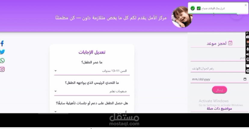 الحجز مع المركز: نموذج (Form) لحجز جلسة مع المركز يتم إرساله مباشرة للإدارة.