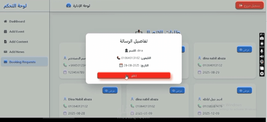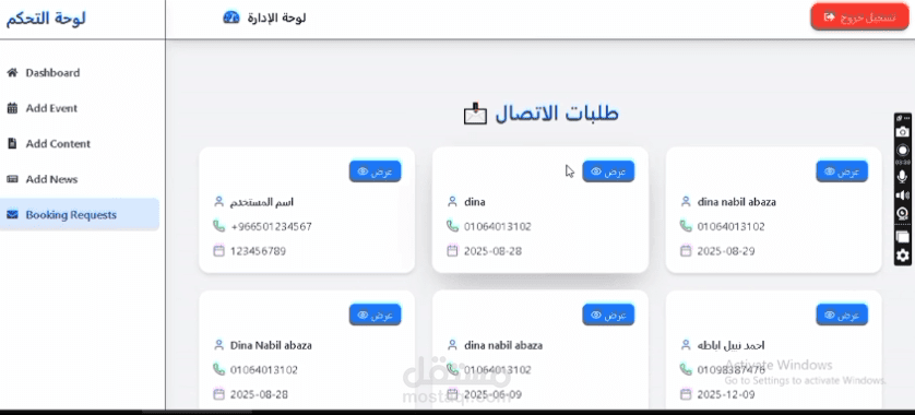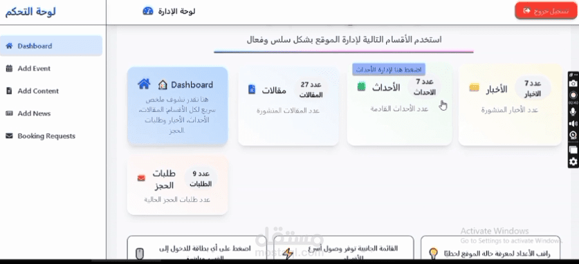 لوحة تحكم (Dashboard) للإدارة: