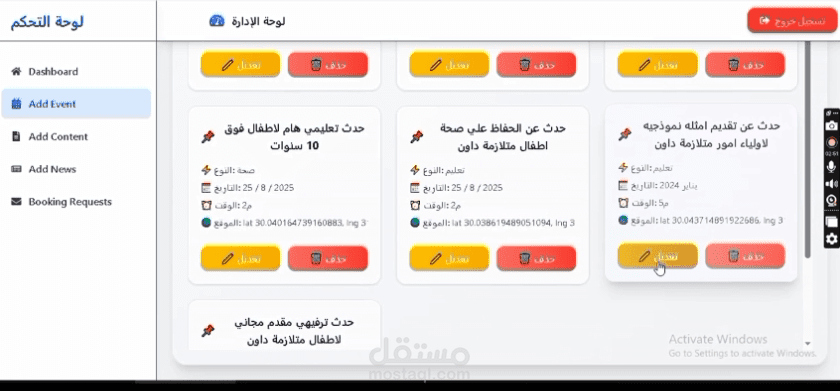 مكتبة المحتوى: مقالات + فيديوهات + مواد إرشادية يتم تحديثها بشكل دوري من خلال لوحة الإدارة.