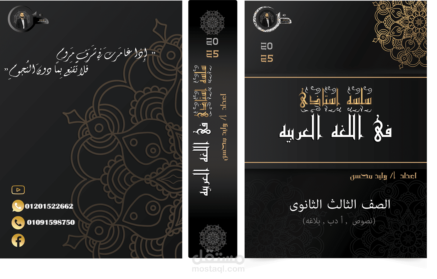 تصميم كلاسيكي وراقي يجمع بين الأناقة والعمق. ⭐ الغلاف يعتمد على خلفية سوداء فخمة مزينة بزخارف ذهبية دقيقة، مما يمنحه مظهرًا فاخرًا ومميزًا. هذا التصميم يبرز قيمة المحتوى ويضفي عليه طابعًا جادًا وأنيقًا، ويناسب كل من يبحث عن تصميم فريد يعكس الأصالة والقوة