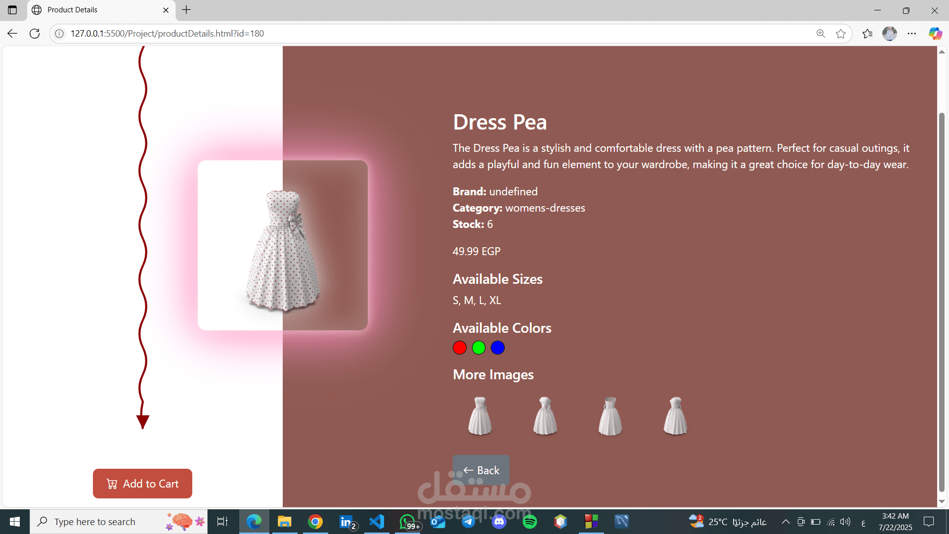 قمت بتصميم وتطوير صفحة المنتجات وصفحة تفاصيل كل منتج باستخدام HTML, CSS, JavaScript، وTailwind CSS، مع مراعاة: