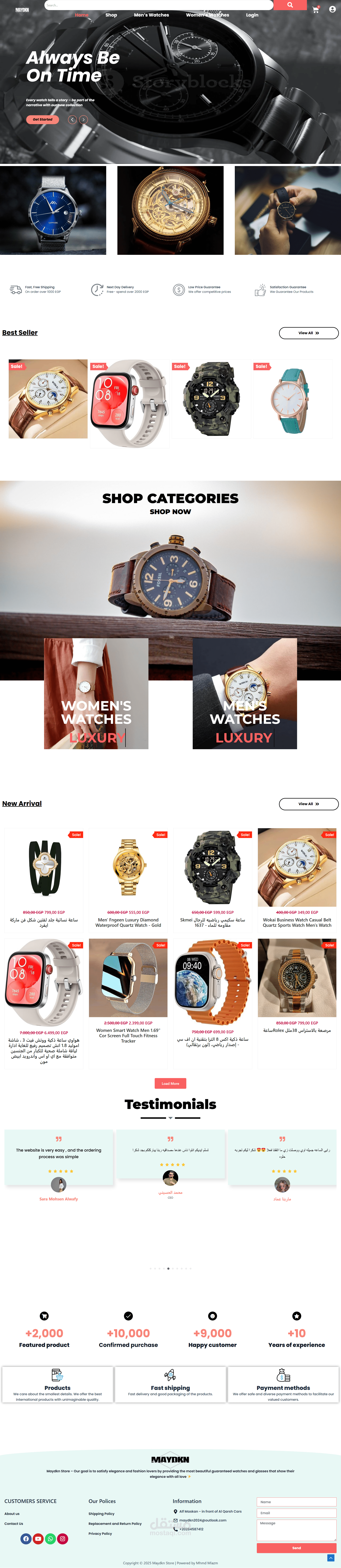 قمت بتصميم وتطوير متجر إلكتروني متخصص في بيع الساعات بمختلف أنواعها (رجالية – نسائية – فاخرة). المتجر يتميز بتصميم عصري وواجهة مستخدم جذابة مع سهولة التصفح.