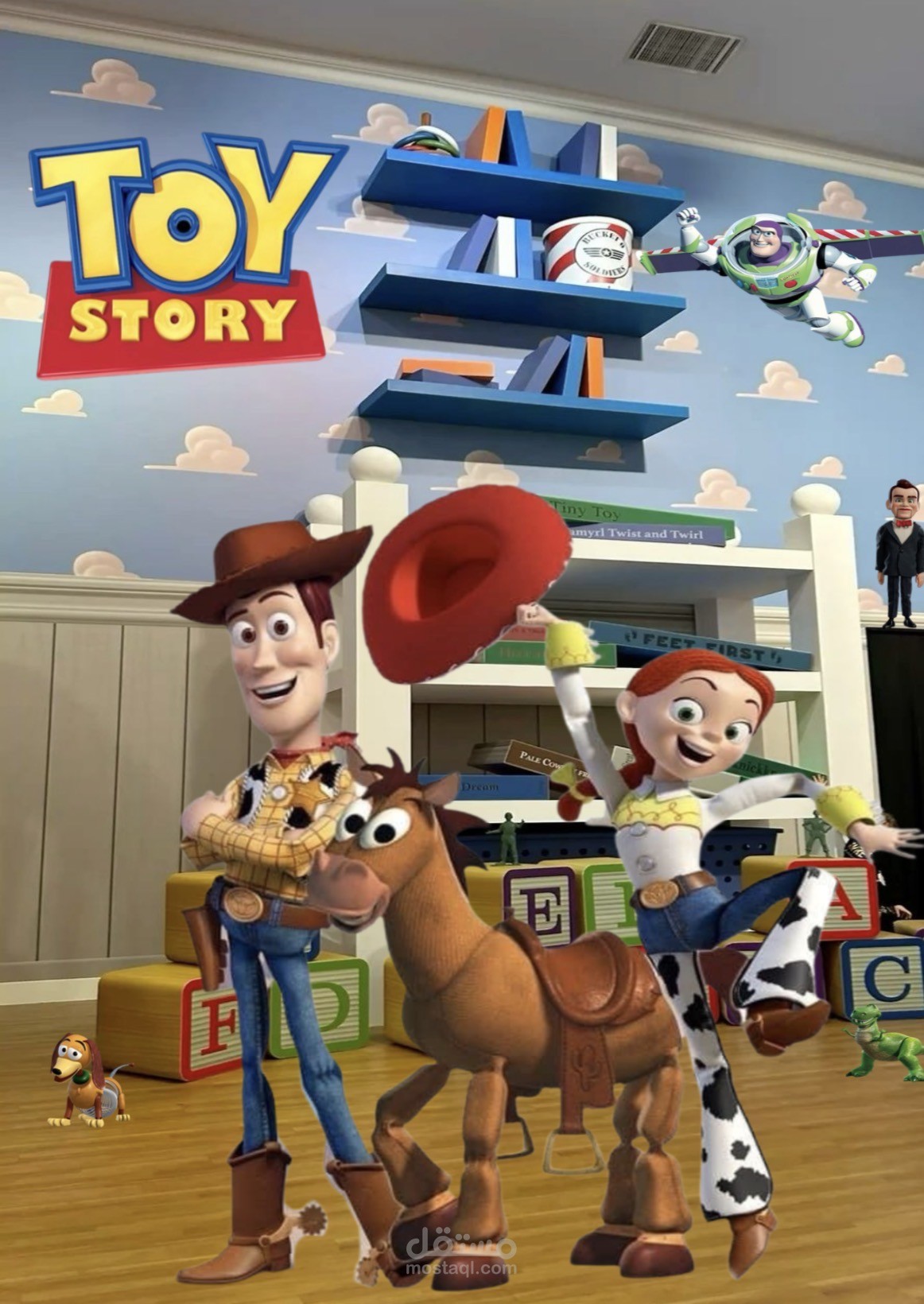 بوستر جذاب بصرياً لفيلم الرسوم المتحركة توي ستوري، يعكس روح المغامرة والصداقة والمرح. التصميم يبرز الشخصيات الشهيرة بألوان حيوية لجذب جميع الأعمار، ويقدم تمثيلاً لافتاً ومميزاً للفيلم المحبوب.