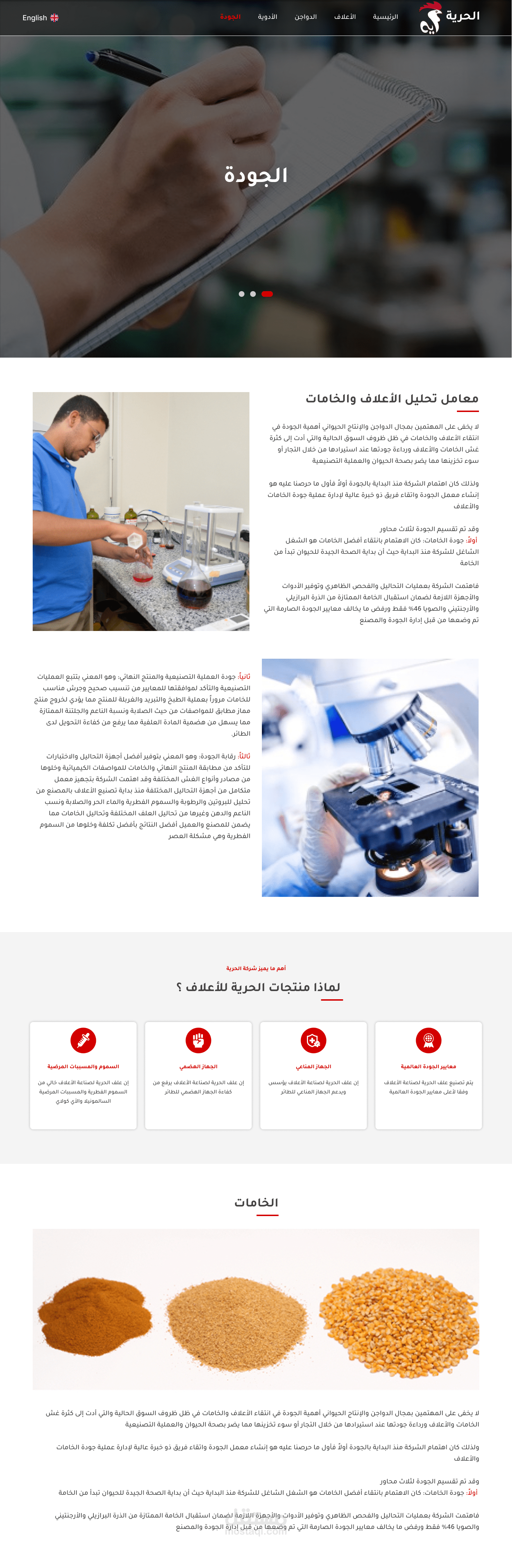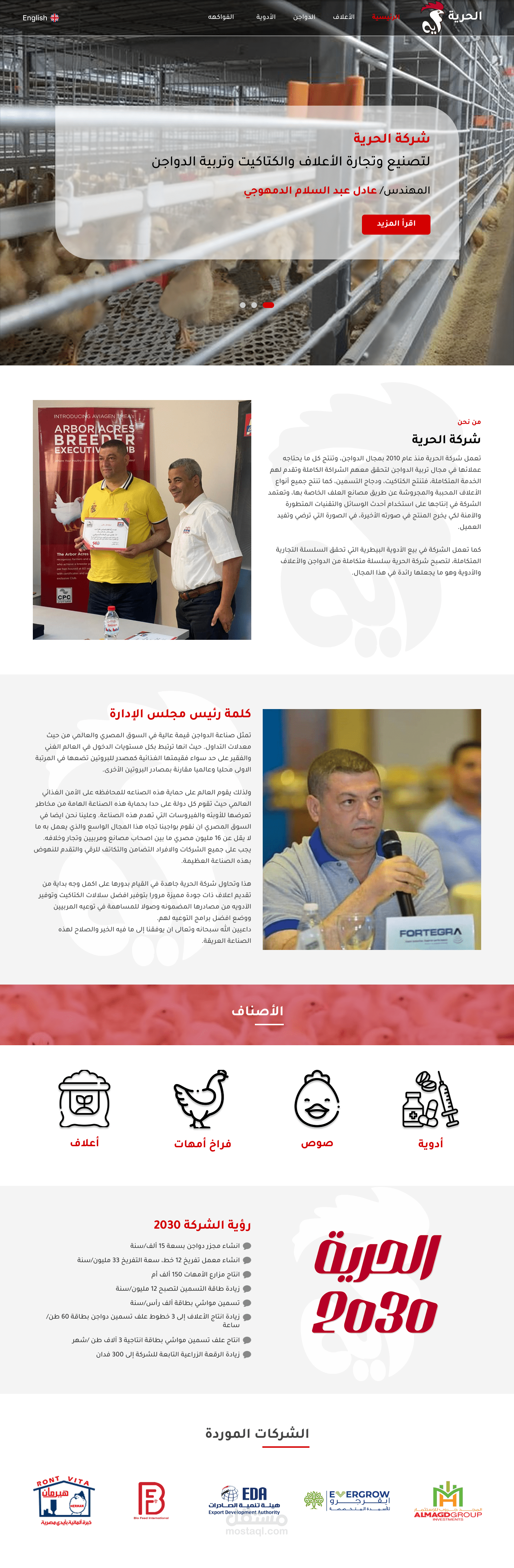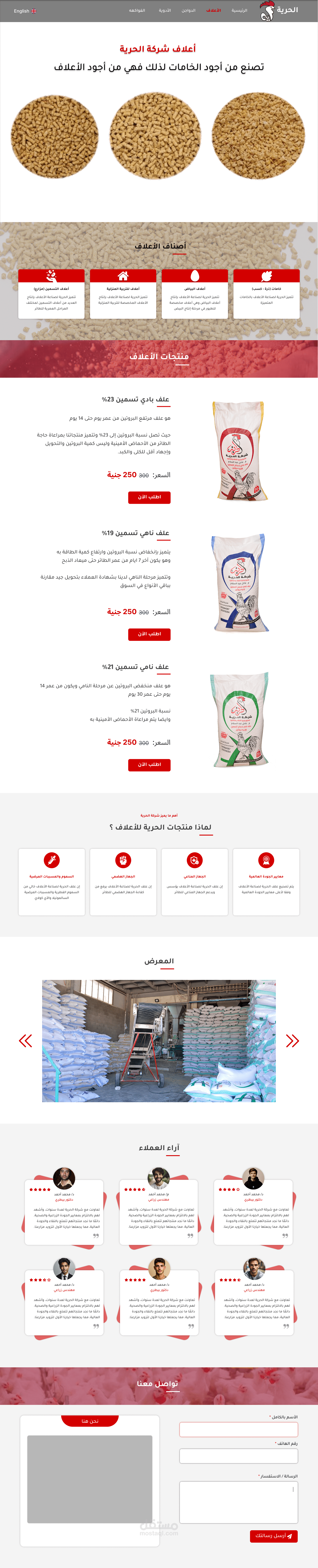 قمت بتطوير موقع إلكتروني تفاعلي لشركة الحرية للأعلاف بهدف تحسين تواجدها الرقمي وزيادة تواصل العملاء.