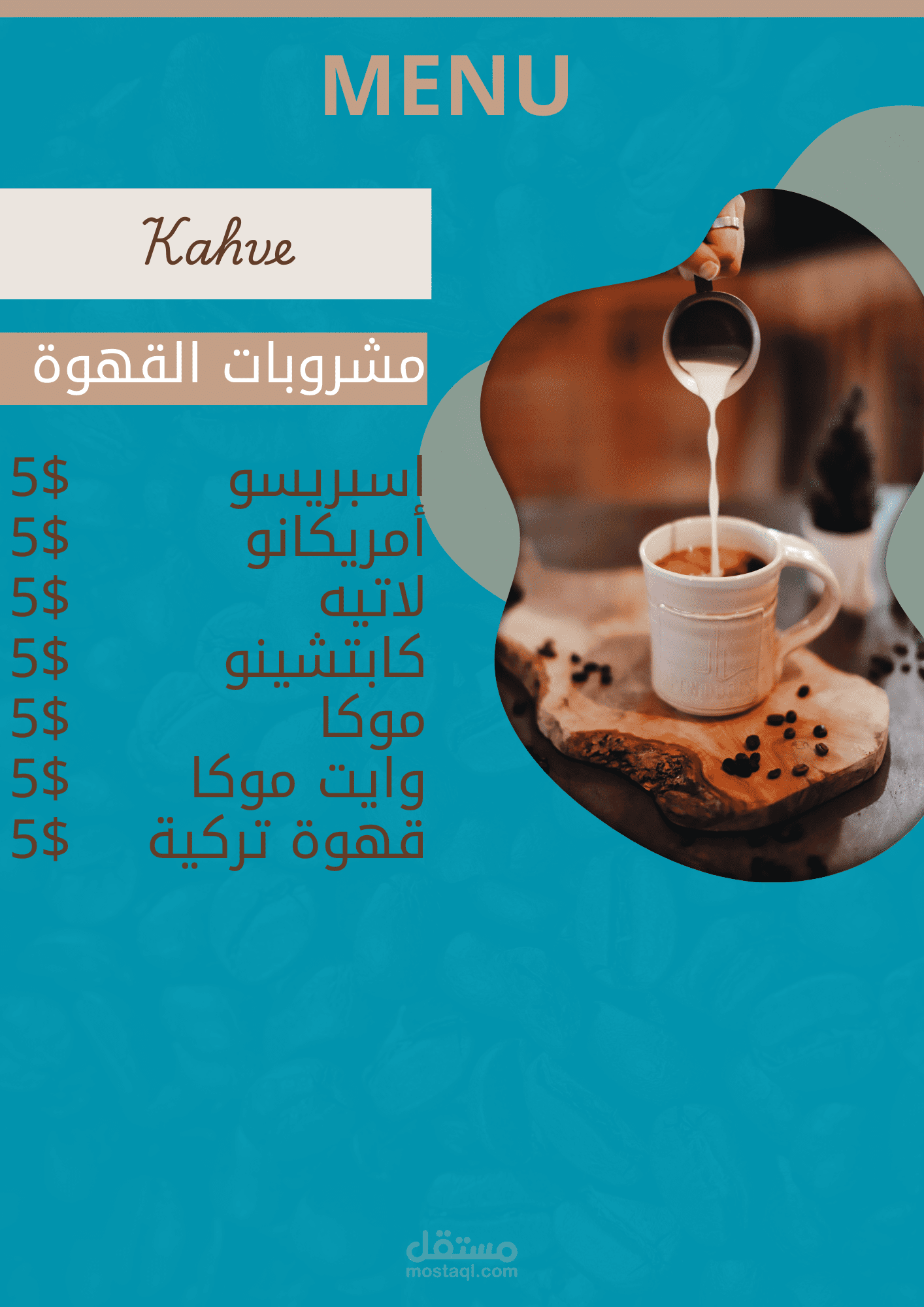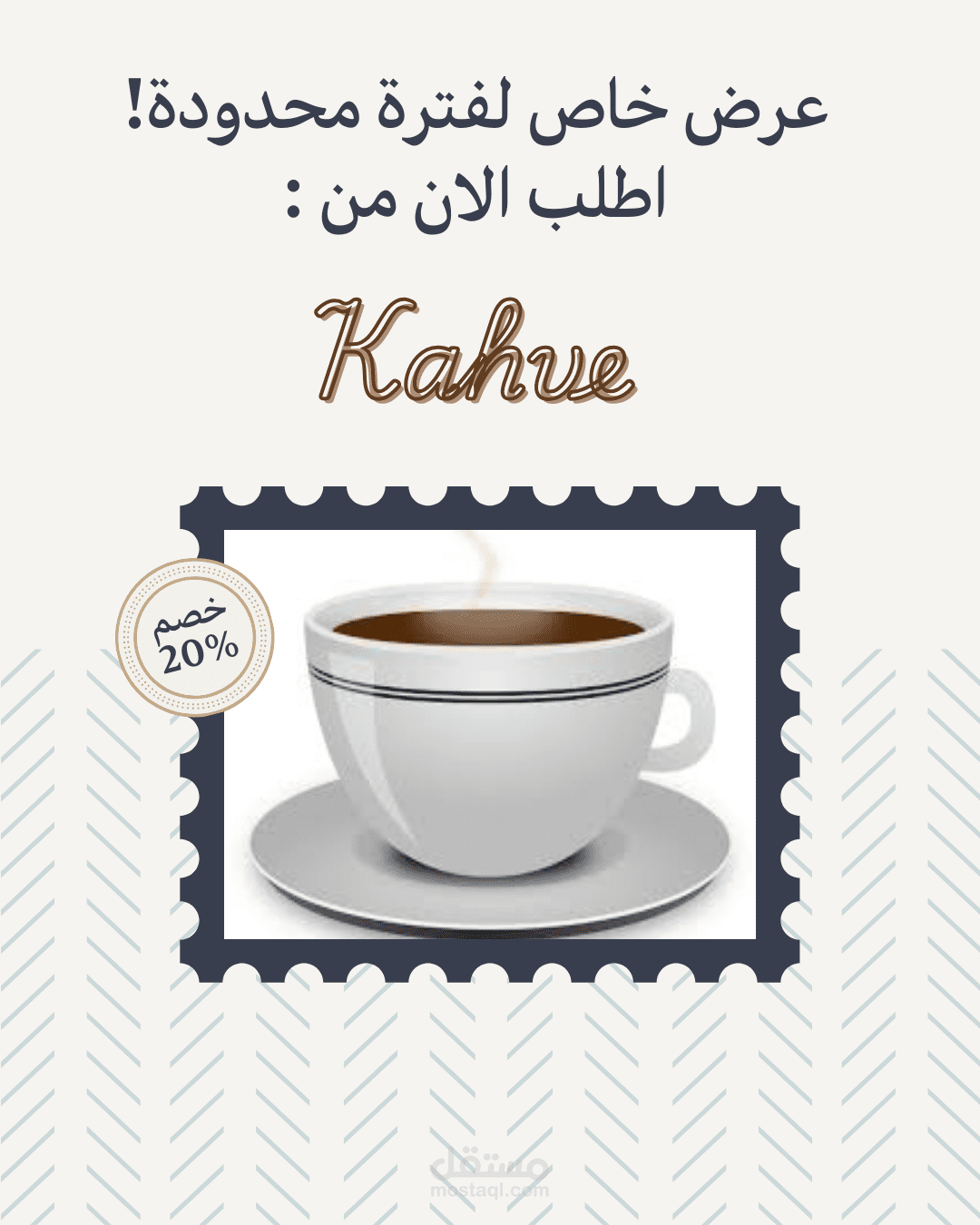 قمت بتصميم مجموعة بوسترات إعلانية لمقهى(kahve)، بهدف إبراز هوية المكان والترويج لمنتجاته بطريقة جذابة.