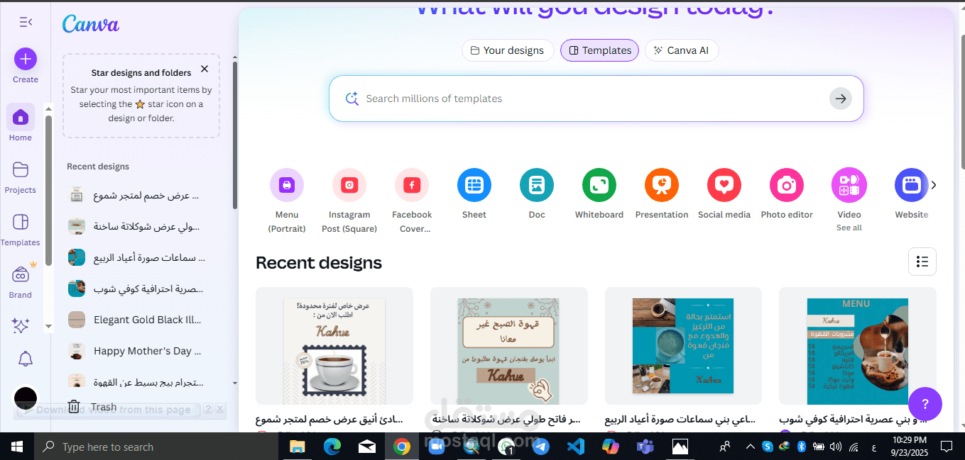 تشمل الأعمال تصميم بوستر اساسي وبوستر للقهوة الصباحية، وبوستر لعروض خاصة..