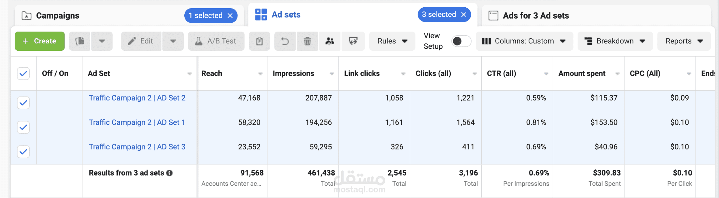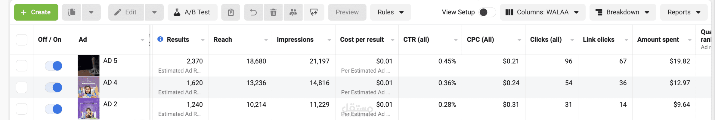 بعض نتائج الحملات الإعلانية الممولة على meta