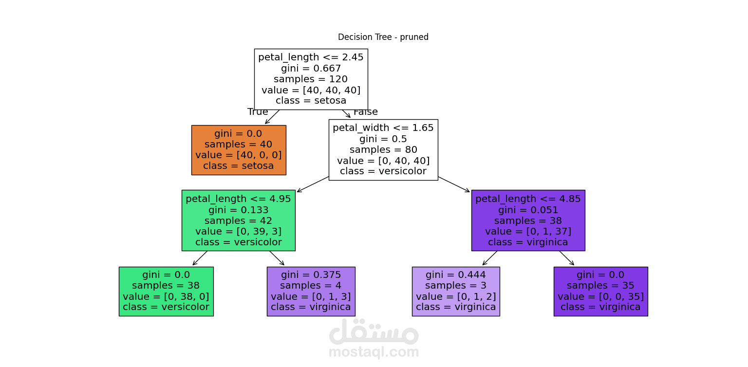 تحليل بيانات Iris باستخدام خوارزمية Decision Tree (مع Pruning) بلغة Python