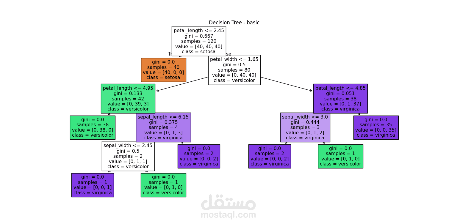 طورت نموذجًا باستخدام خوارزمية Decision Tree لتصنيف بيانات Iris dataset. شمل المشروع تحميل البيانات، تدريب نموذج أساسي وآخر مع Pruning، ثم تقييم الأداء (Accuracy & F1 Score) وعرض تقرير تصنيف كامل، مع رسم شجرتين توضيحيتين للنموذجين.