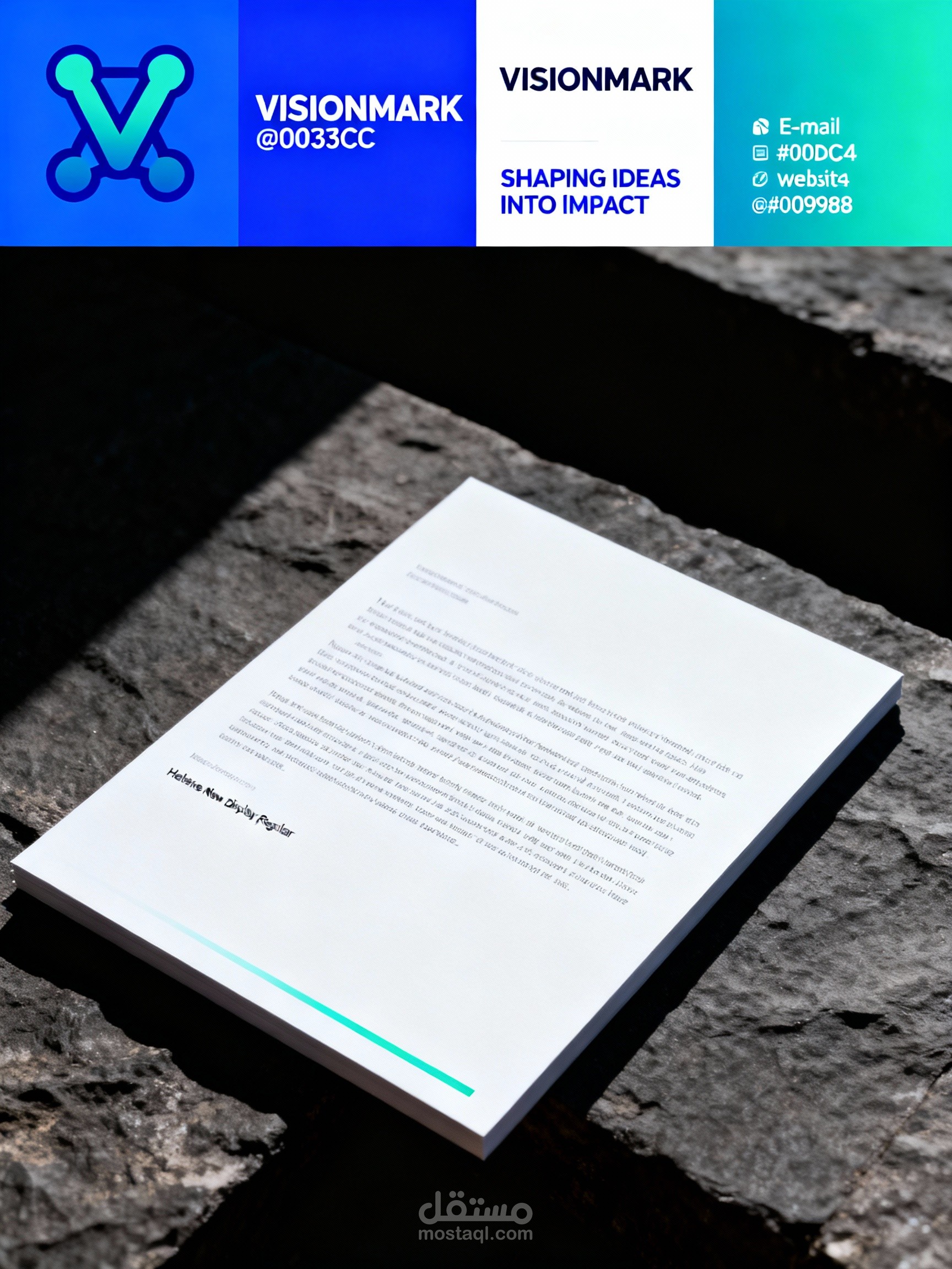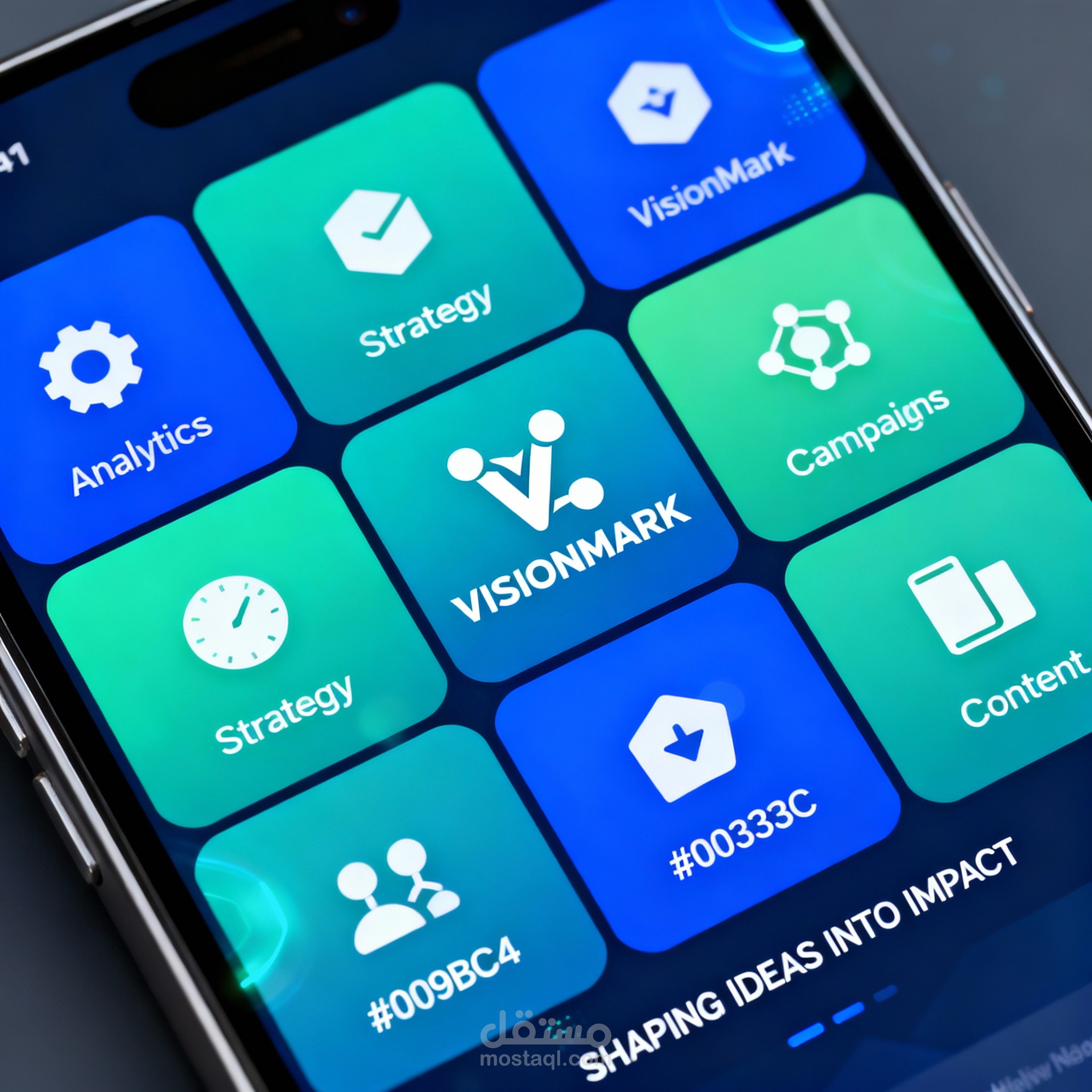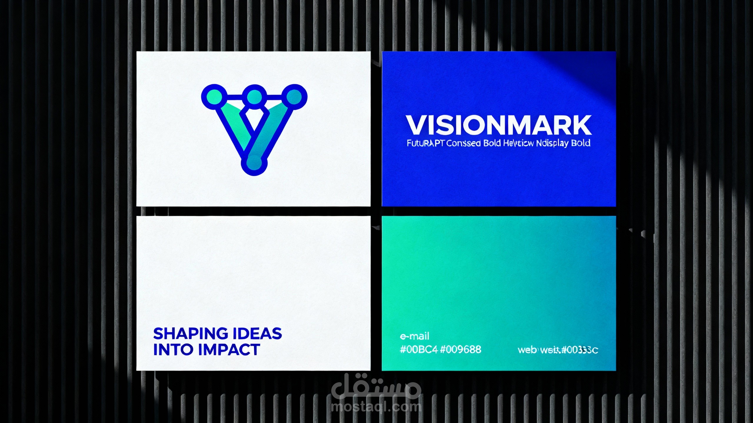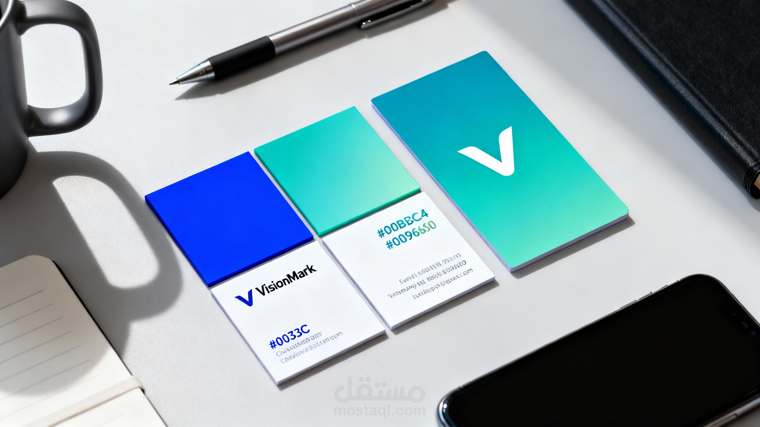 تم تنفيذ مشروع تصميم هوية بصرية كاملة لشركة VisionMark المتخصصة في حلول التسويق الرقمي.