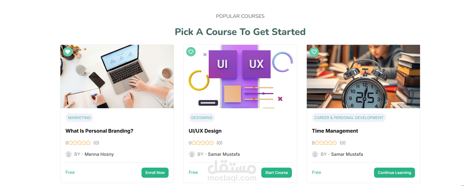 - نظام إدارة دورات تدريبية (كورسات) مع تفاصيل كل دورة وصورة ووصف.