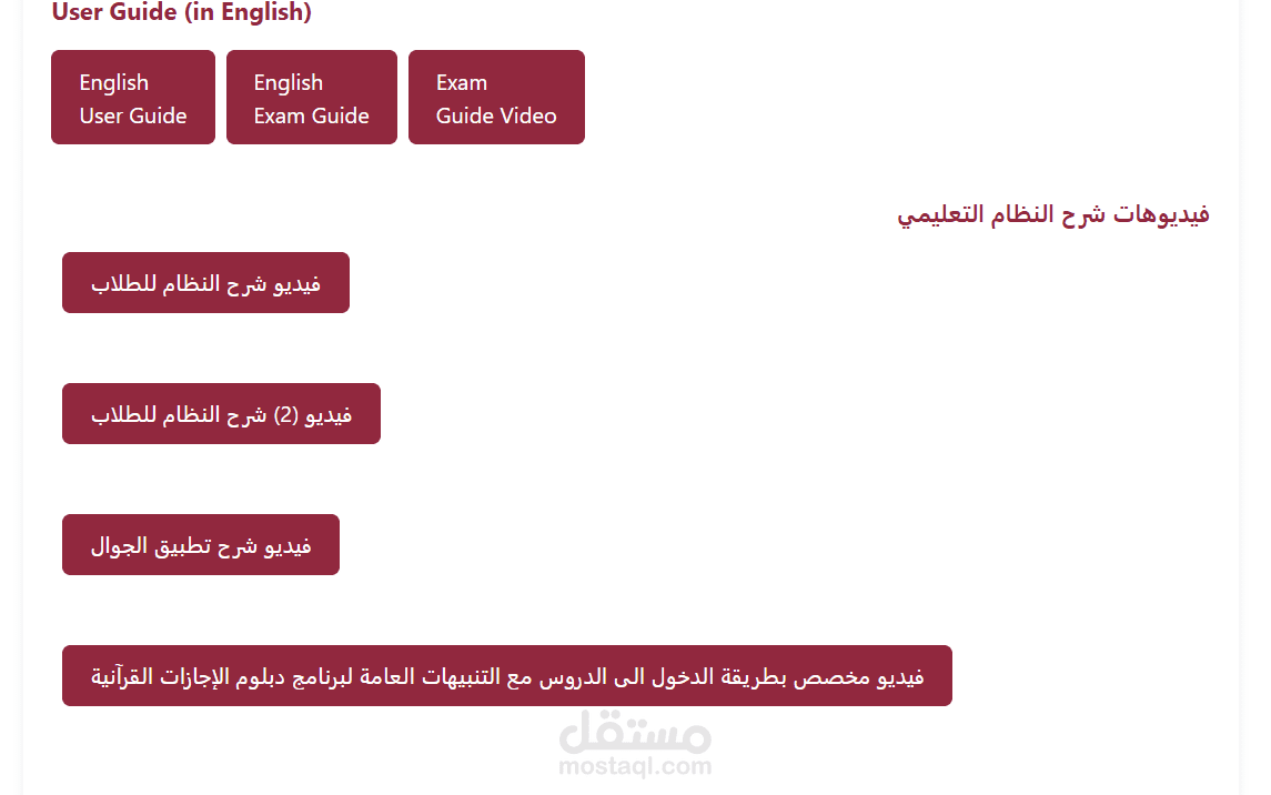 رفع وتنظيم المواد ضمن 5 دبلومات رئيسية، كل دبلوم يحوي سنوات دراسية ودورات متعددة.