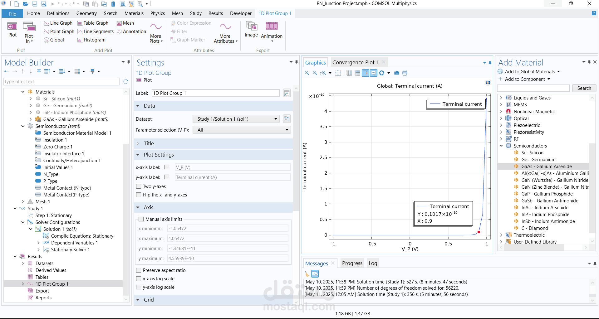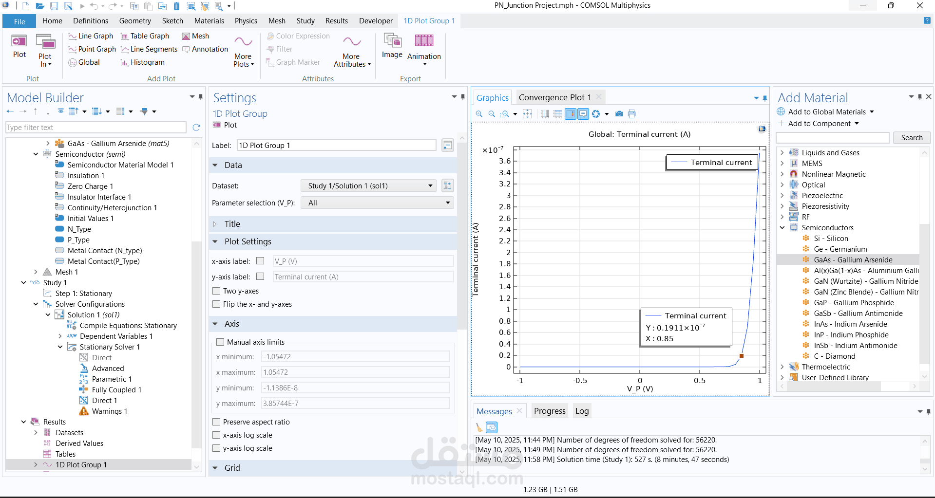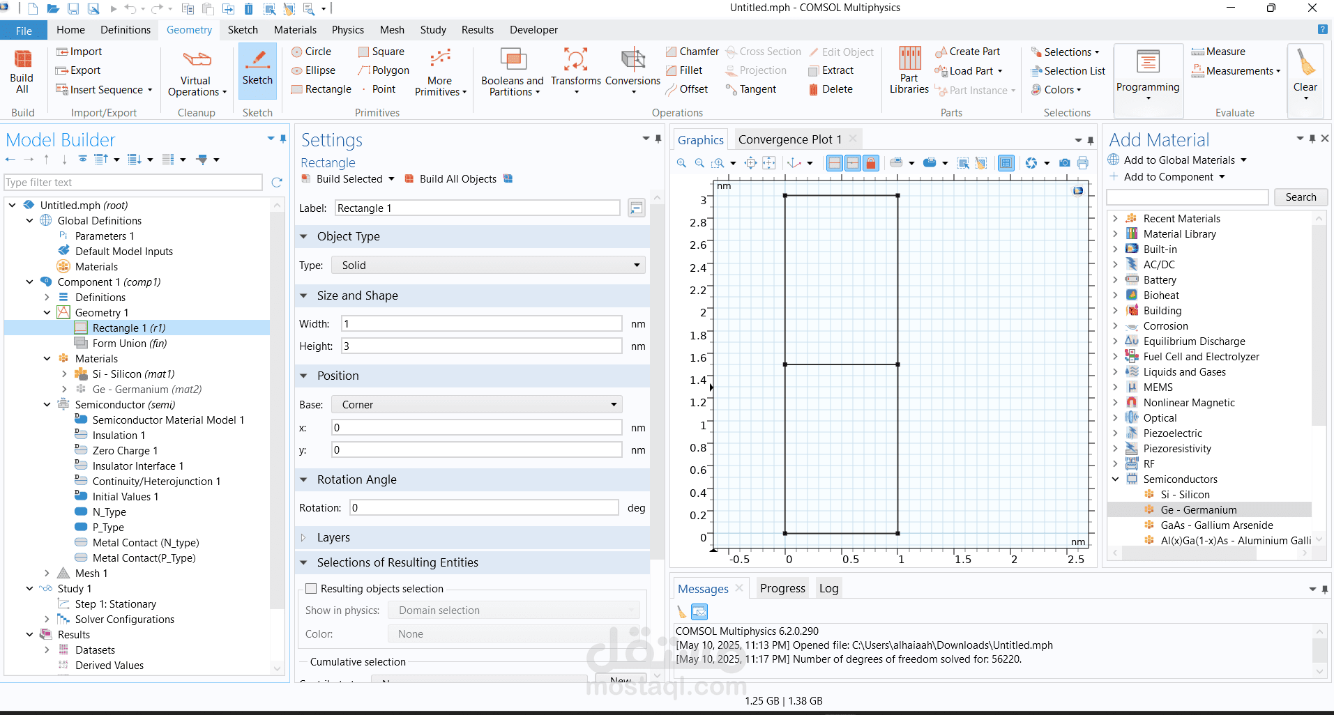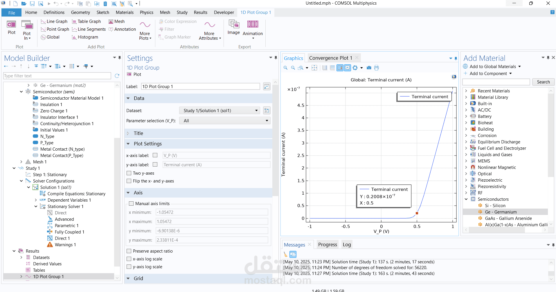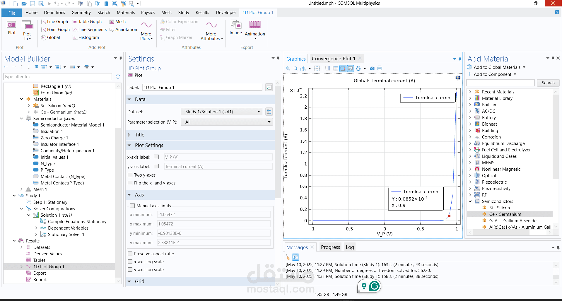 تصميم وبناء وصلة ثنائية الأبعاد (2D P-N Junction) باستخدام برنامج COMSOL Multiphysics.