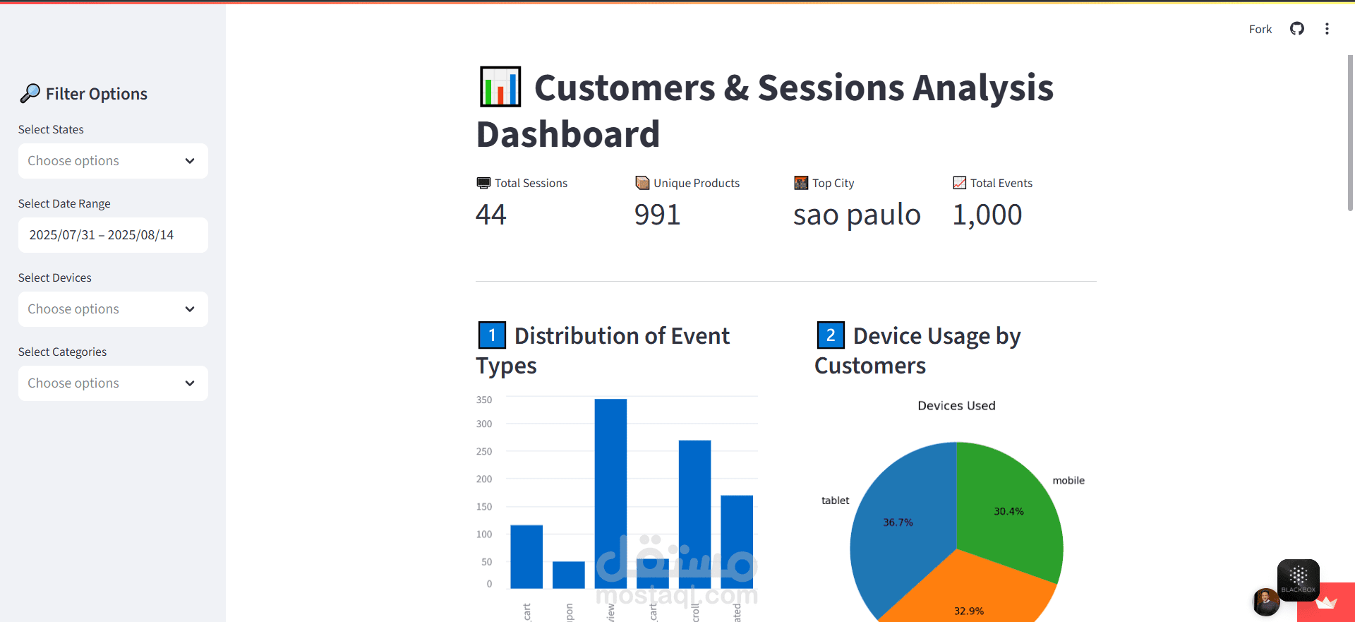 محاكاة بيانات آنية (Real-Time) لسلوك المستخدمين مثل التصفح والشراء، ومعالجتها فورياً لتمكين المتابعة اللحظية للأداء.