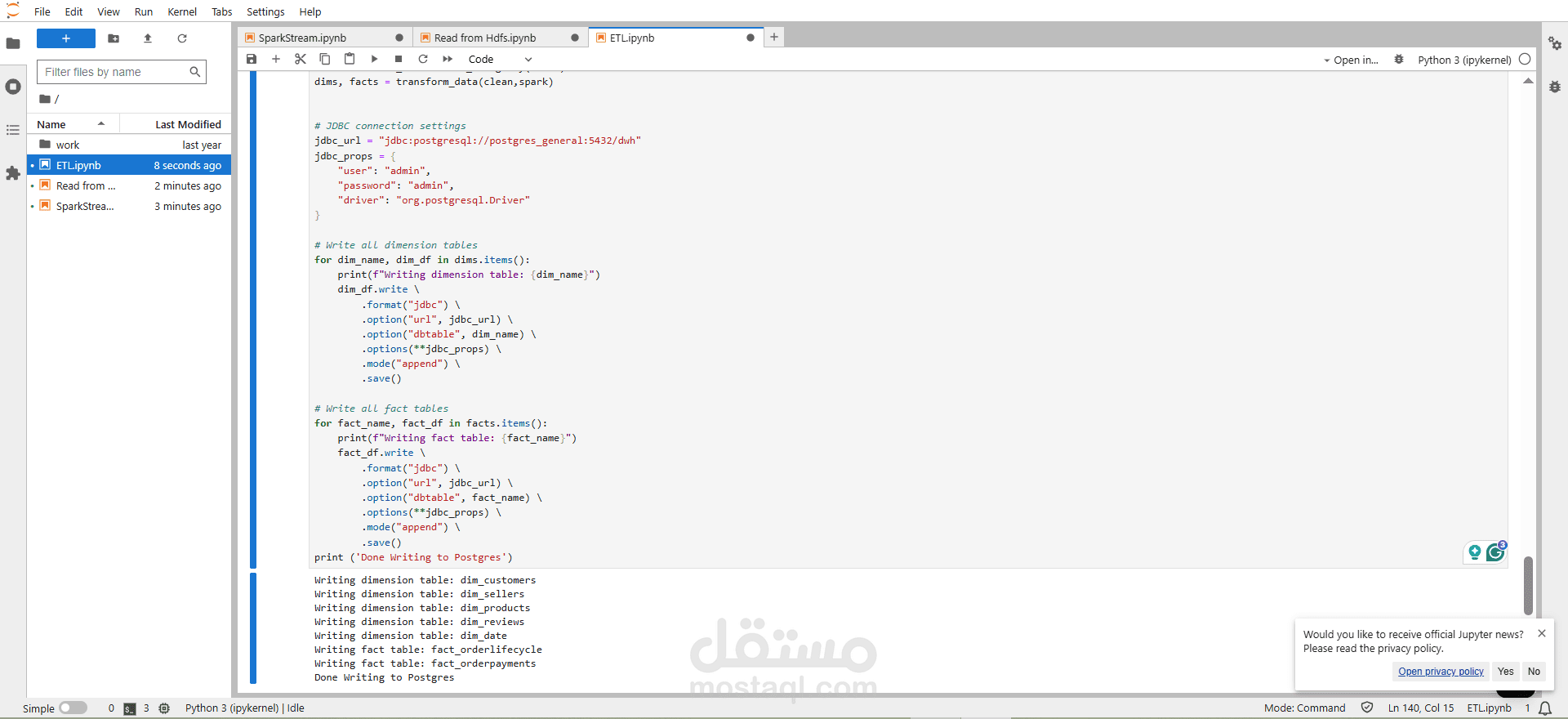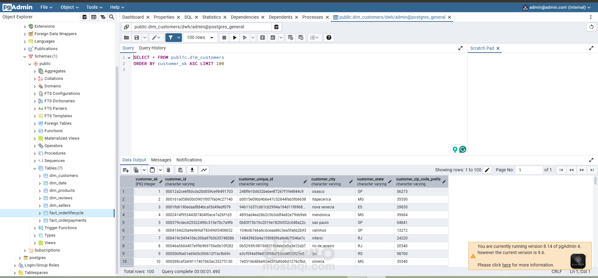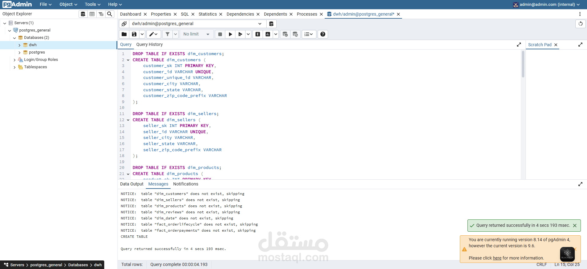 PostgreSQL: مستودع بيانات (Data Warehouse) وتحليل بعدي (OLAP).