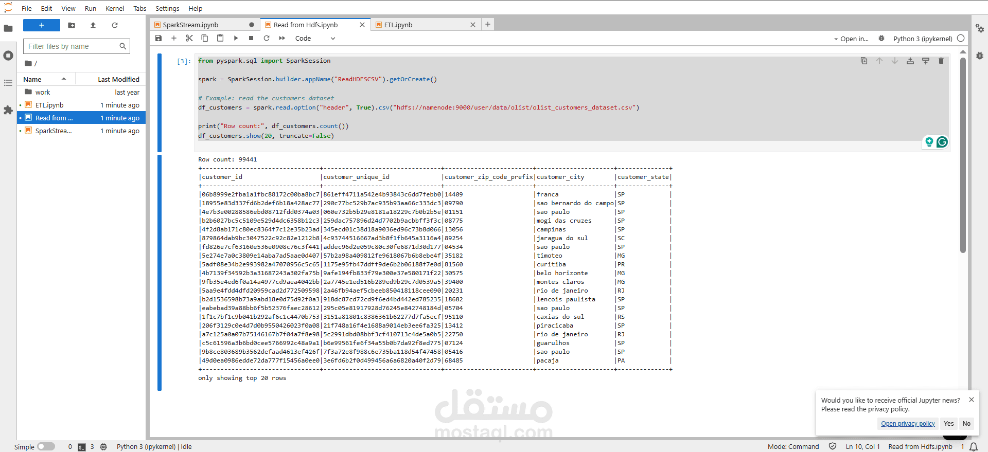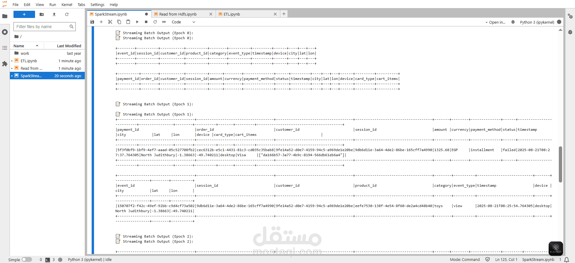 Apache Spark: معالجة بيانات دفعية (ETL) ومعالجة آنية (Structured Streaming).
