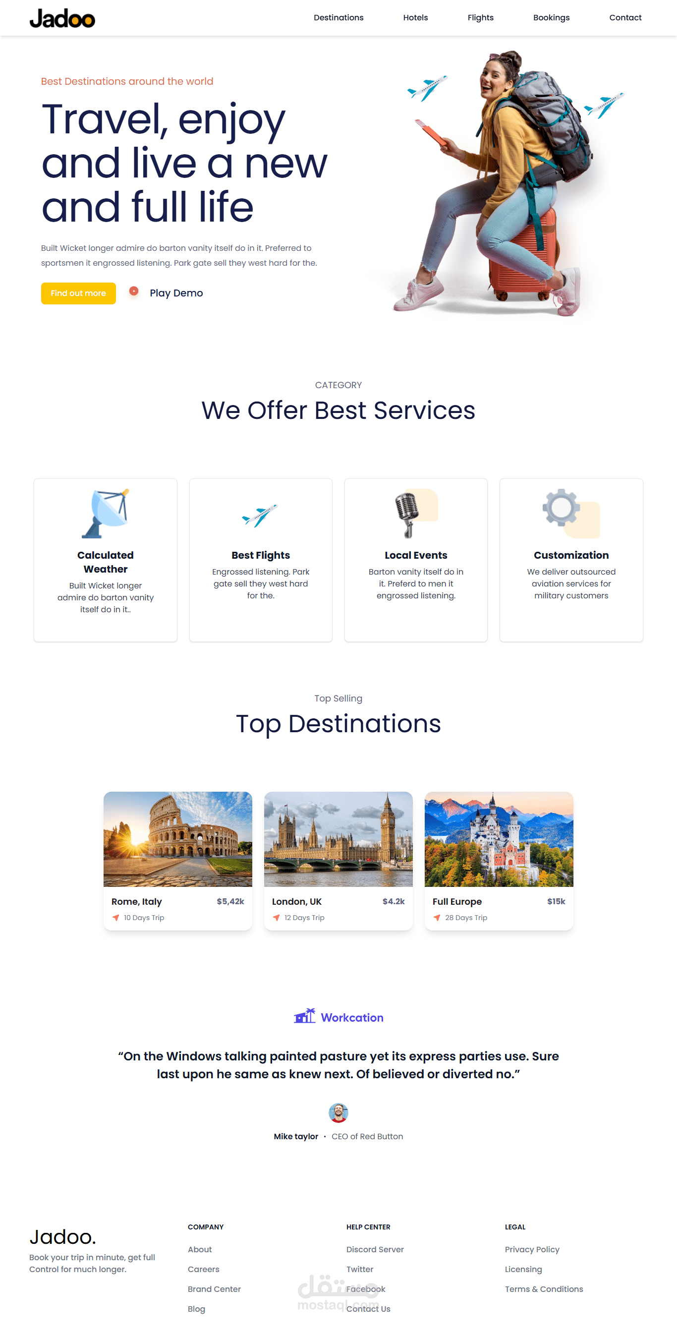 صميم وتطوير صفحة هبوط تفاعلية لموقع سياحي (Jadoo) تعرض الخدمات والوجهات السياحية بشكل عصري وجذاب مع واجهة مستخدم بسيطة وسهلة الاستخدام