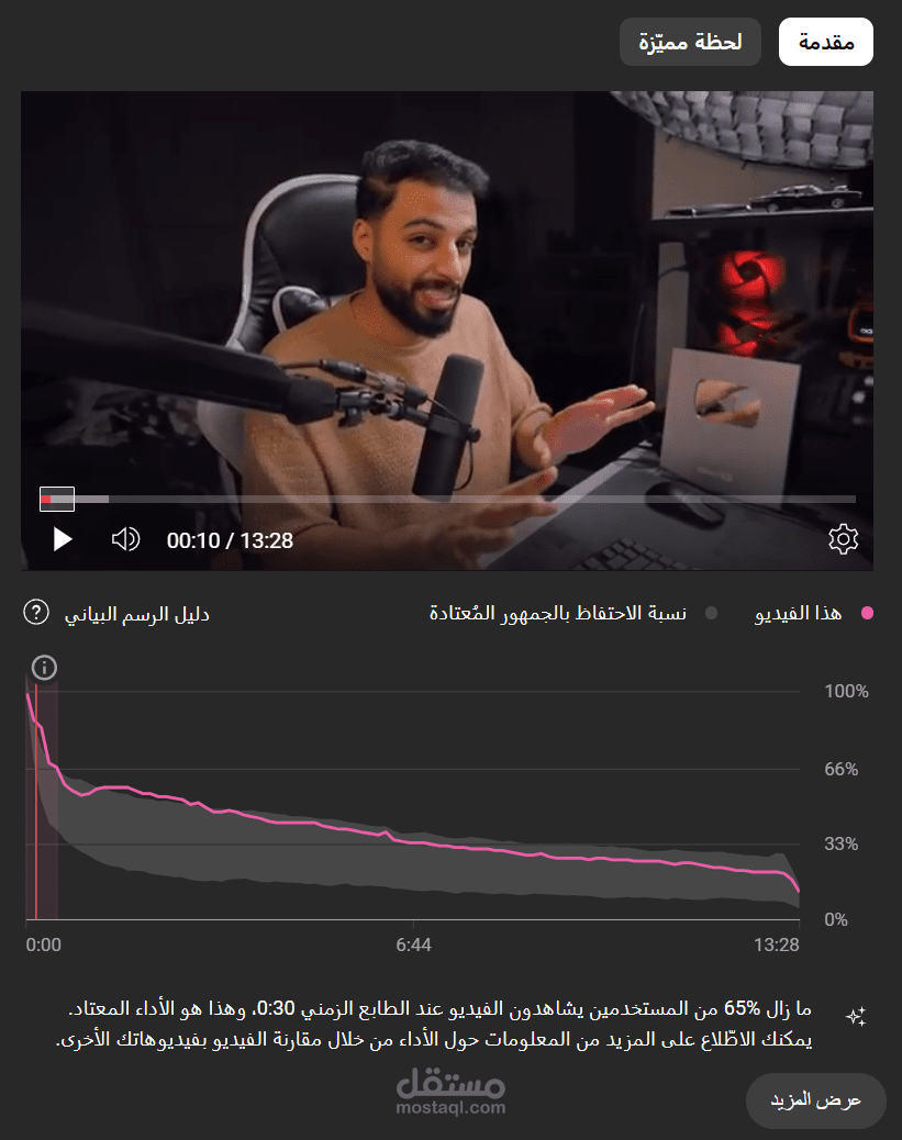 الأهم من ذلك: نسبة الاحتفاظ بالجمهور (Retention) ارتفعت بشكل ملحوظ، حيث استمر 65% من المشاهدين بعد الدقيقة الأولى، وهذا نتيجة مباشرة لاستخدام أسلوب مونتاج مدروس يحافظ على تفاعل المشاهد حتى النهاية.