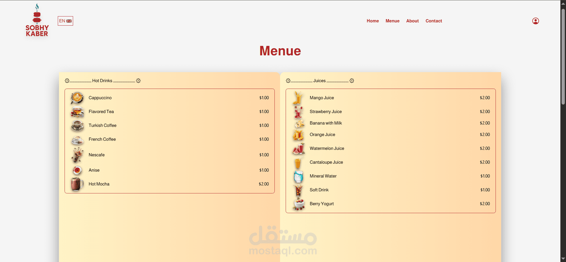 • Implemented flipbook-style interactive menu and Google Maps integration.