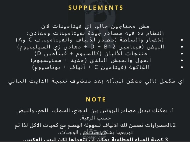 ترشيح مجموعة من المكملات الغذائية اللتي تخدم الهدف
