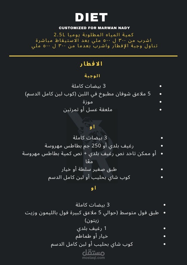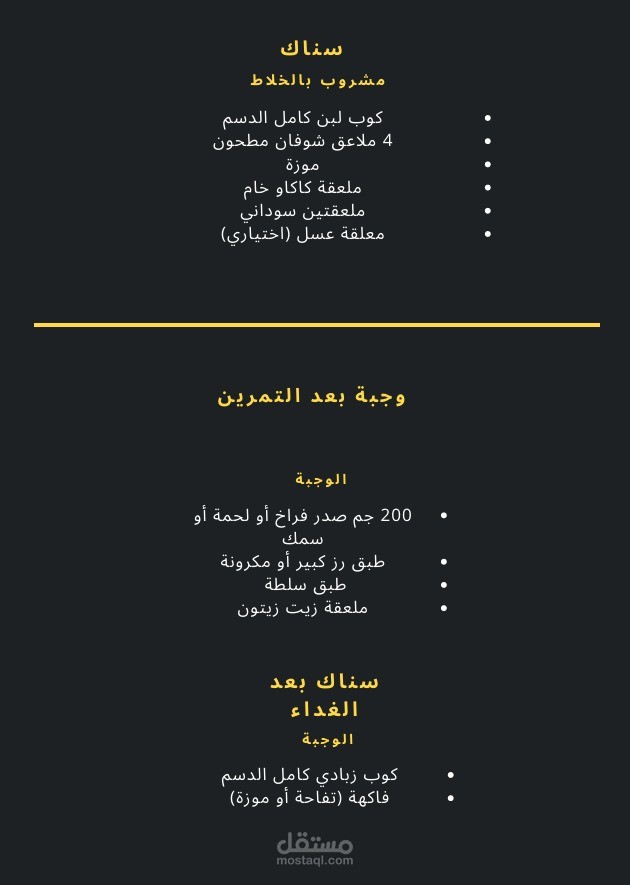 برنامج تغذية رياضية يحتوي على :