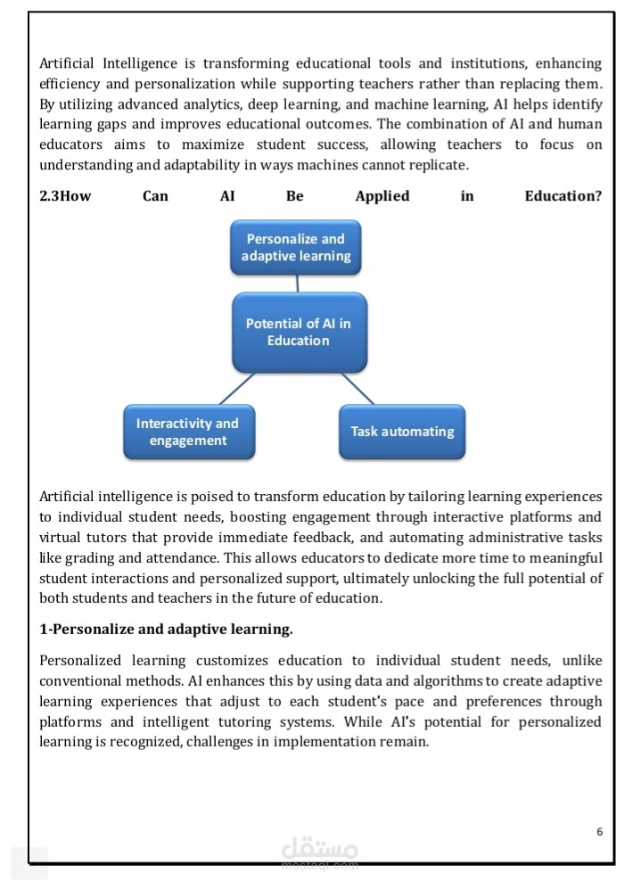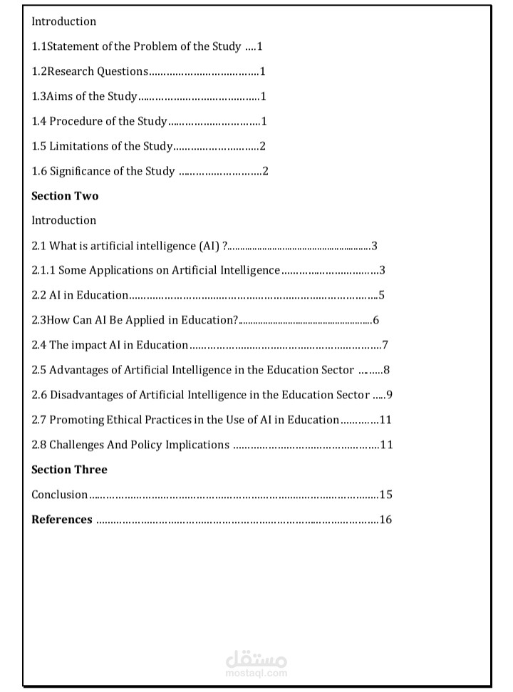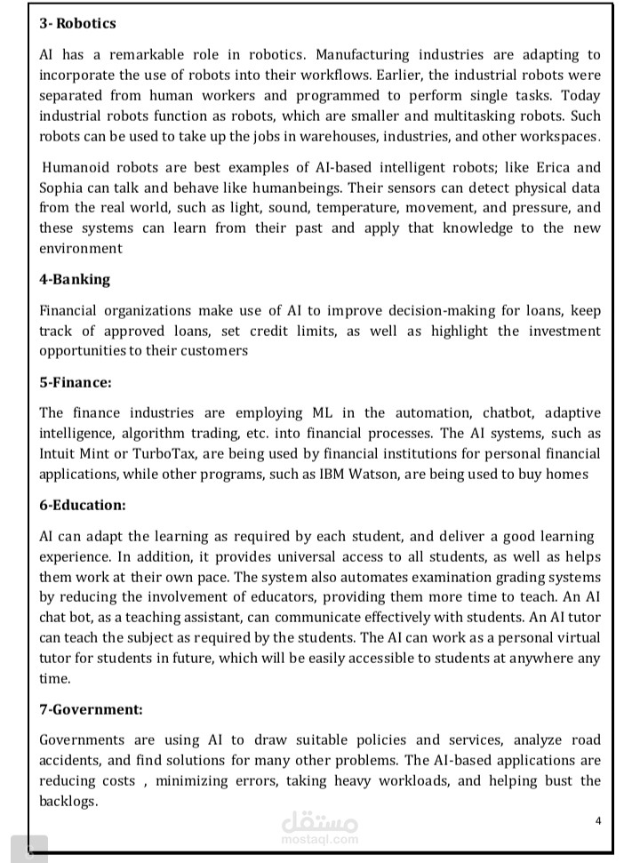 العمل هو كتابة بحوث شاملة عامة في مجالات مختلفة مثلا الذكاء الاصطناعي وعلاقته بالتعليم من خلال التعرف على ماهية الذكاء الاصطناعي و ربطه بالتعليم و ماهي امكانيات الذكاء الاصطناعي التي يمكن استخدامها من قبل التدريسين في مجال الاكاديمي و كذلك مزايا وعيوب الذكاء الاصطناعي في مجال التعليم الاكاديمي