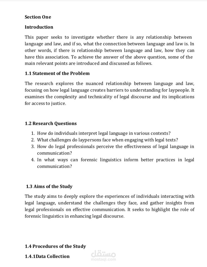 هذا العمل يتحدث عن اللغة وعلاقتها بالقانون اي انه يفسر كيف بستخدم كل من القضاة و المحامون و المدعون لغة خاصة و تكون هذه اللغة نوعا ما خاصة و معقدة لايفهما الا اصحاب الخبرة في المجال القانوني