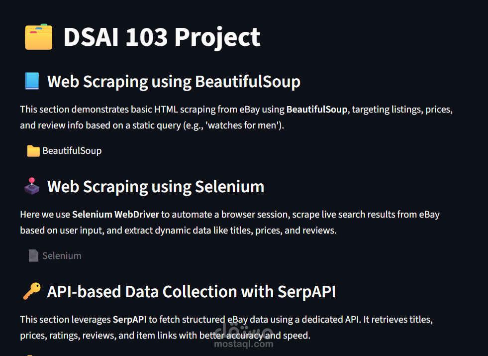 استخراج بيانات المنتجات من eBay (العناوين – الأسعار – عدد المراجعات) باستخدام أكثر من تقنية لضمان أفضل النتائج.