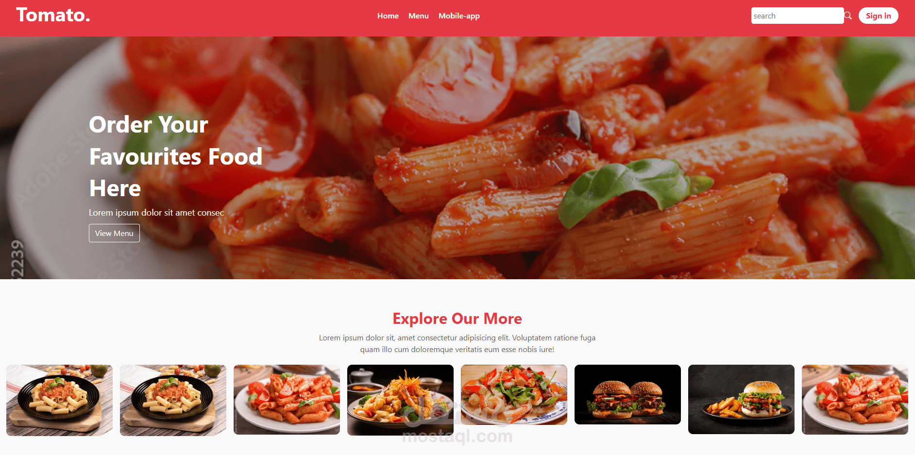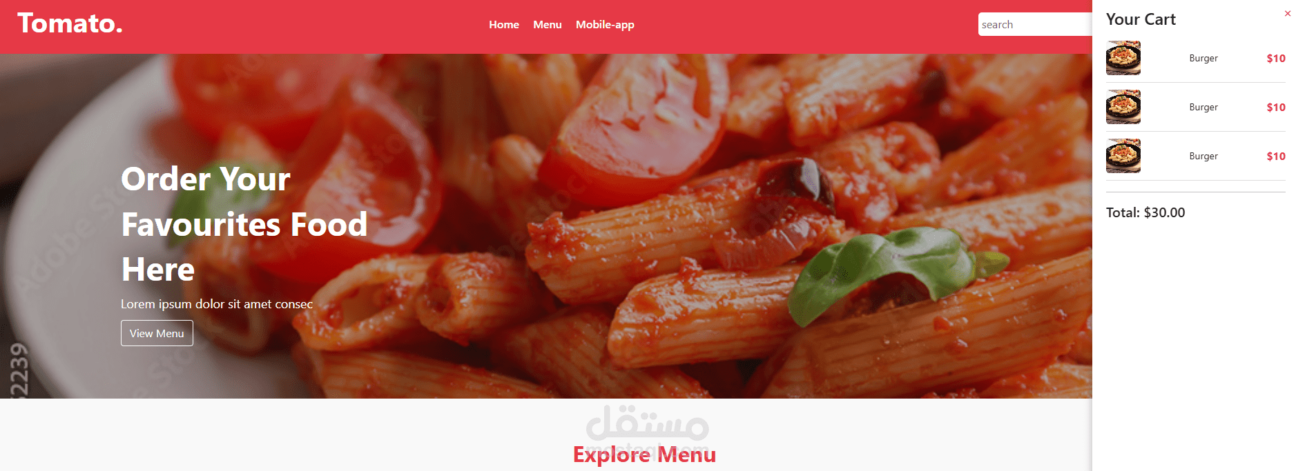 تم تصميم وتطوير متجر إلكتروني عصري لمطعم بواجهة جذابة وسهلة الاستخدام باستخدام HTML, CSS, Bootstrap, Tailwind, JavaScript مع مراعاة تجربة المستخدم وسهولة التصفح.