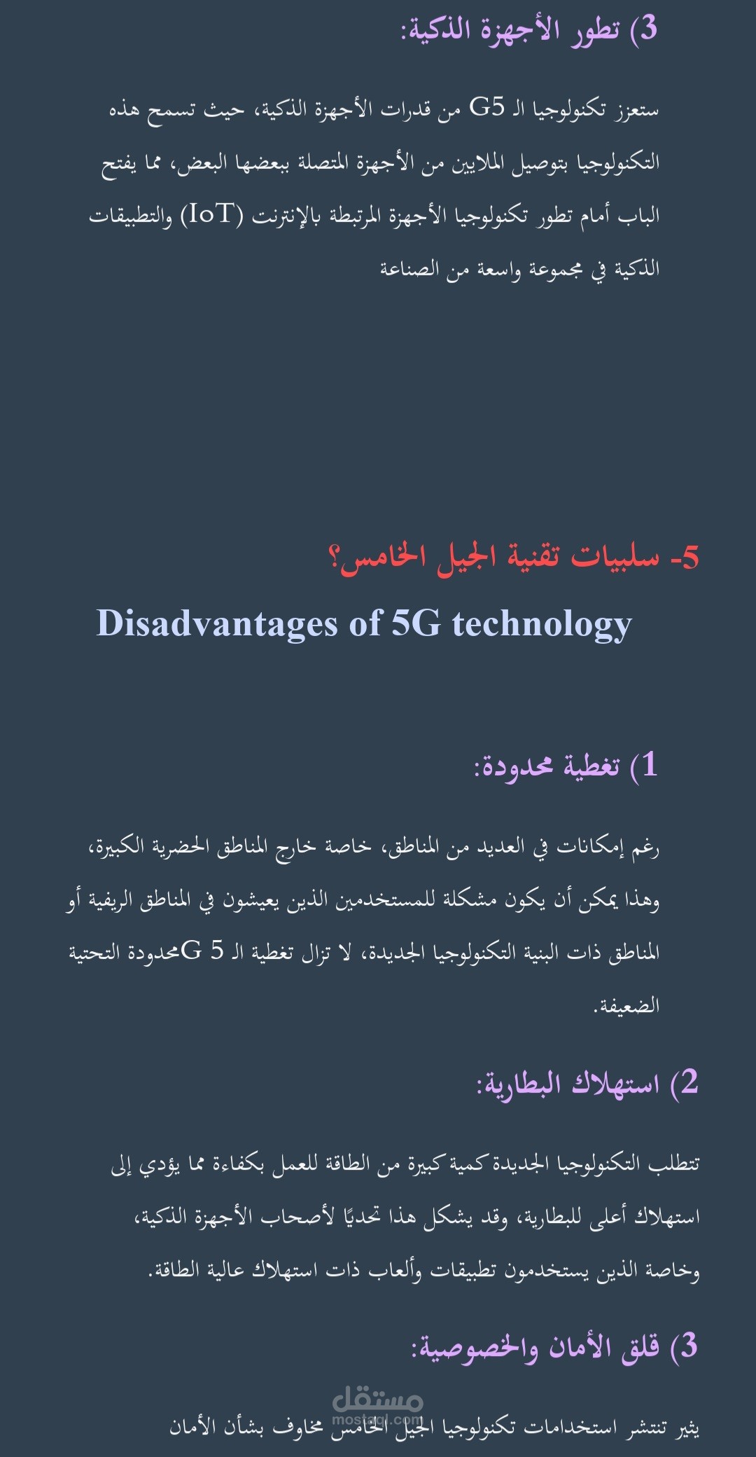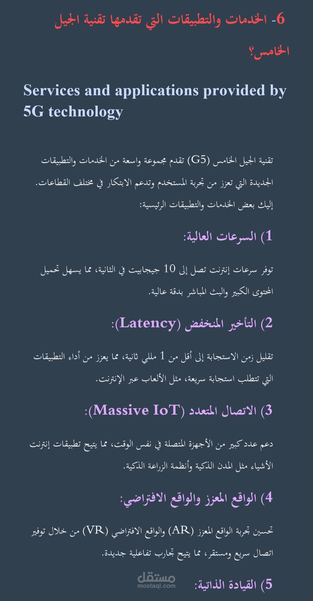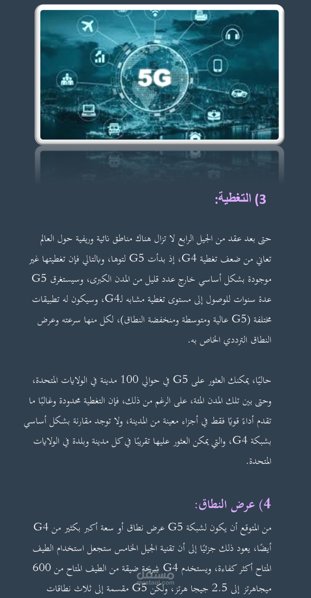 طلب مني مساعدة طلاب في بحث عمل وكتابة محتوى عن الجيل الخامس عبر برنامج word