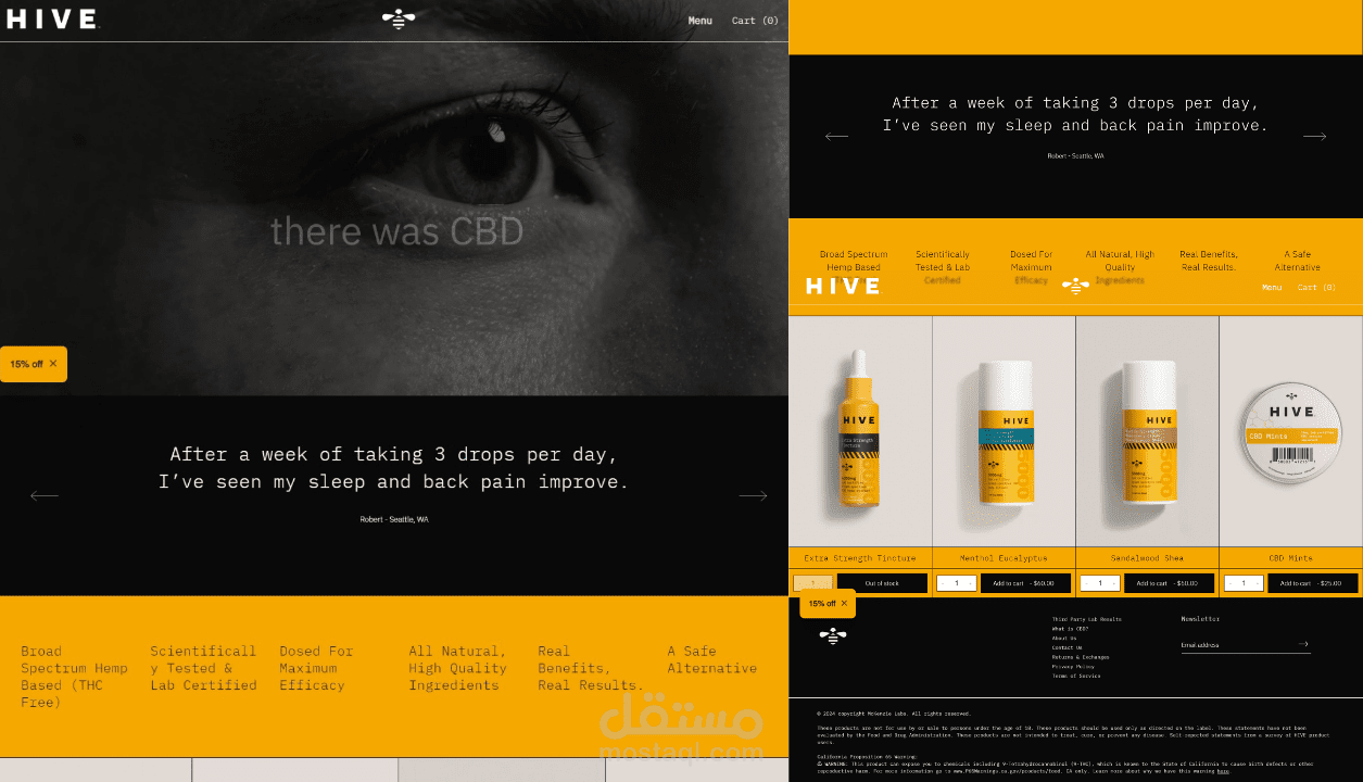 تم تصميم وتطوير متجر إلكتروني احترافي على منصة Shopify لعلامة HiveCBD.