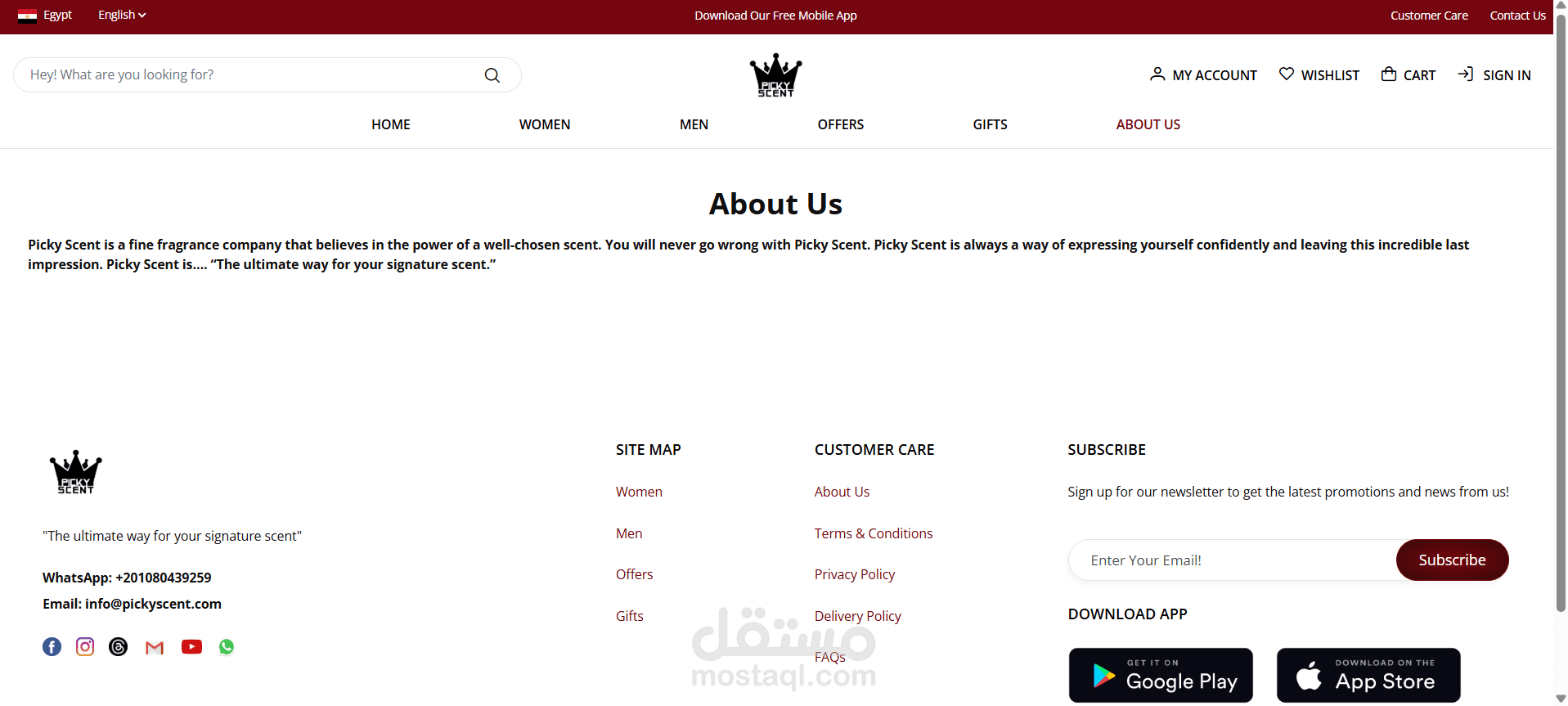 تصميم وتطوير موقع Pickyscent.com، وهو متجر إلكتروني متخصص في بيع العطور والمنتجات العطرية. ركّزت في تنفيذ الموقع على الجمع بين التصميم الأنيق و سهولة الاستخدام لتقديم تجربة تسوق مميزة للزوار.